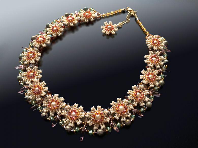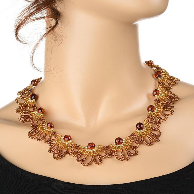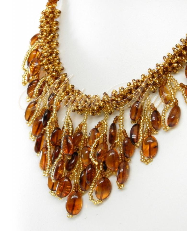 - perles - transparentes ainsi que des couleurs or et marron foncées ;