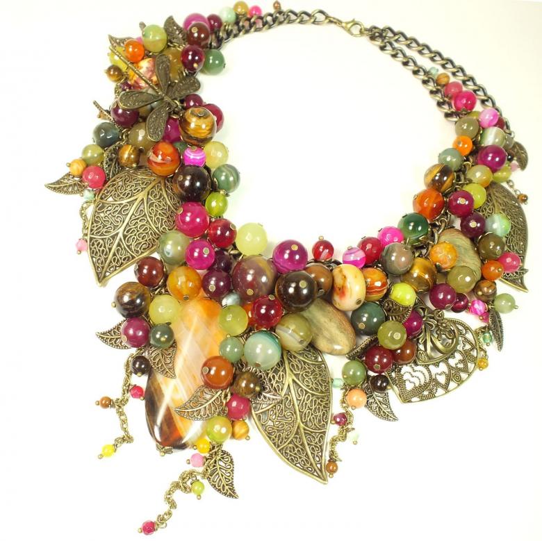 - les feuilles sont reliées entre elles par des perles, des perles d'agate et de jaspe