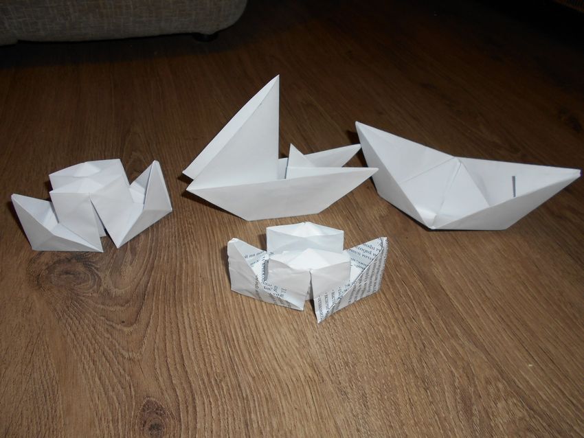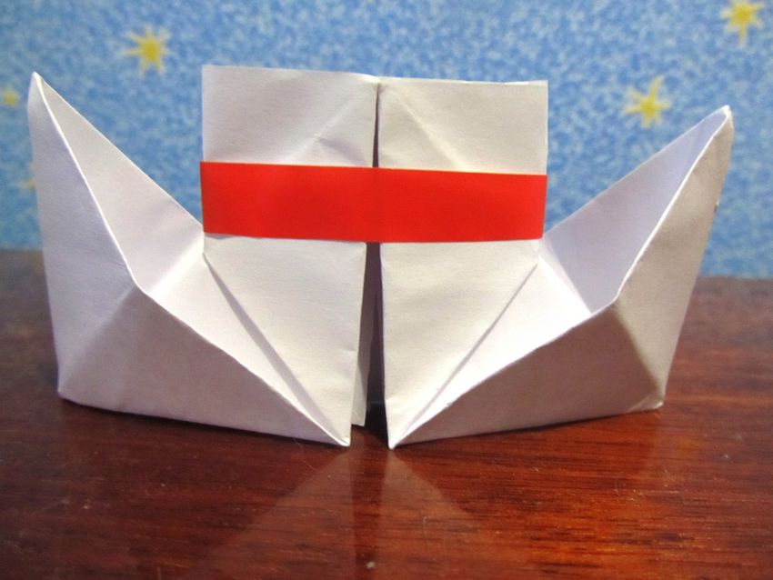 Le schéma de pliage d'un bateau en papier est assez original. Une fois que vous vous êtes habitué aux mouvements de base du dispositif, vous pouvez immédiatement passer à des modèles plus difficiles.