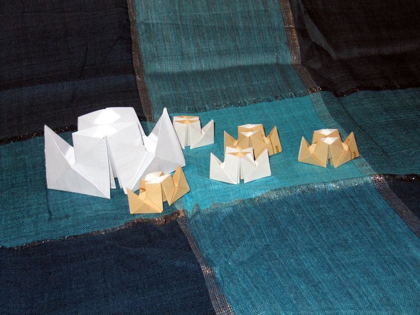 Un autre modèle favori que nous connaissons depuis l'enfance. Ce modèle populaire est assez simple dans son schéma et pourtant il peut être plié même par un enfant. Tout ce qu'il faut et qu'il est important de maintenir, c'est la proportionnalité, car il s'agit ici d'observer le motif "miroir".