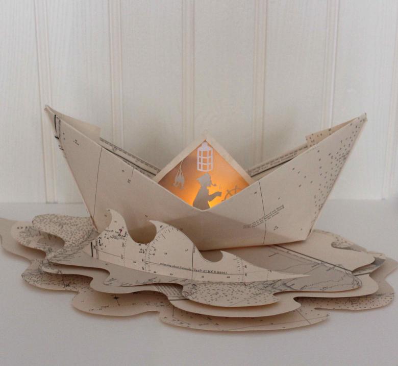 Dans le modèle résultant, nous le prenons par le triangle "pointu" en bas et ouvrons le modèle. Voilà, il ne reste plus qu'à peindre le bateau, à poser les fenêtres et à le laisser naviguer. Pour plus de densité, le modèle peut être traité avec du scotch ou de la cire.