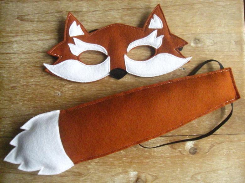 En plus de l'image d'un renard, vous pouvez utiliser des motifs pour une robe rouge ou un masque de renarde. Max, d'ailleurs, est assez facile à réaliser à partir d'un gabarit, qu'il suffit de découper dans du carton et de recouvrir de peinture et de vernis. Pour plus de commodité, vous pouvez porter le masque à l'aide d'un élastique.