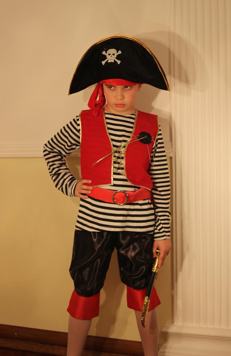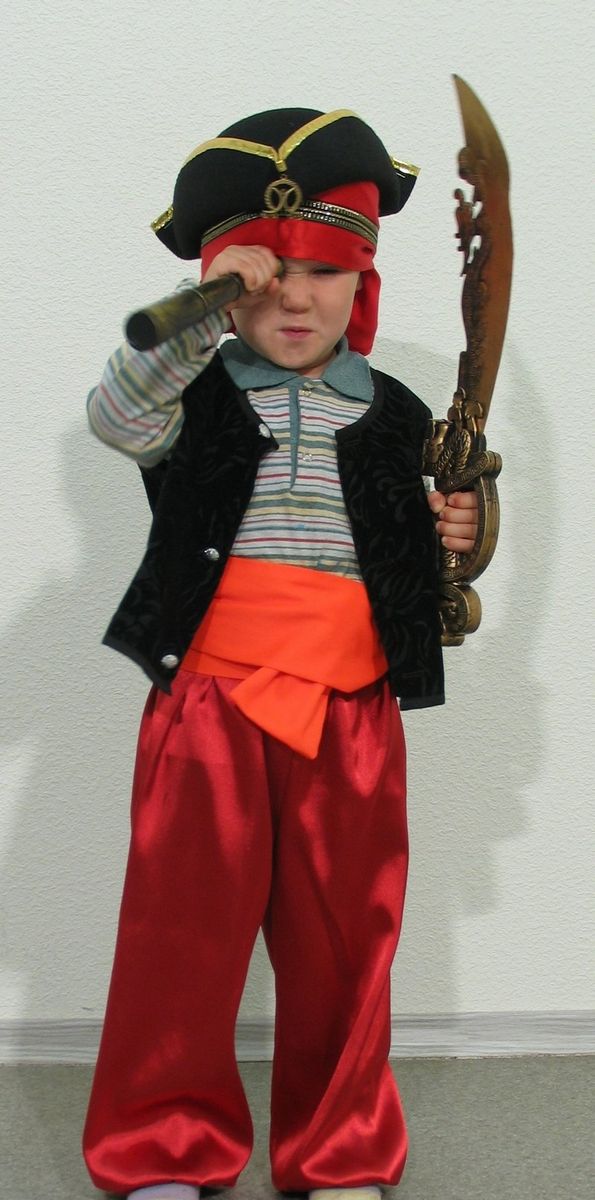 Attachez un mouchoir autour de la tête du garçon, "mettez" un bandage sur l'œil "assommé" et le "vieux" costume de loup de mer est prêt.