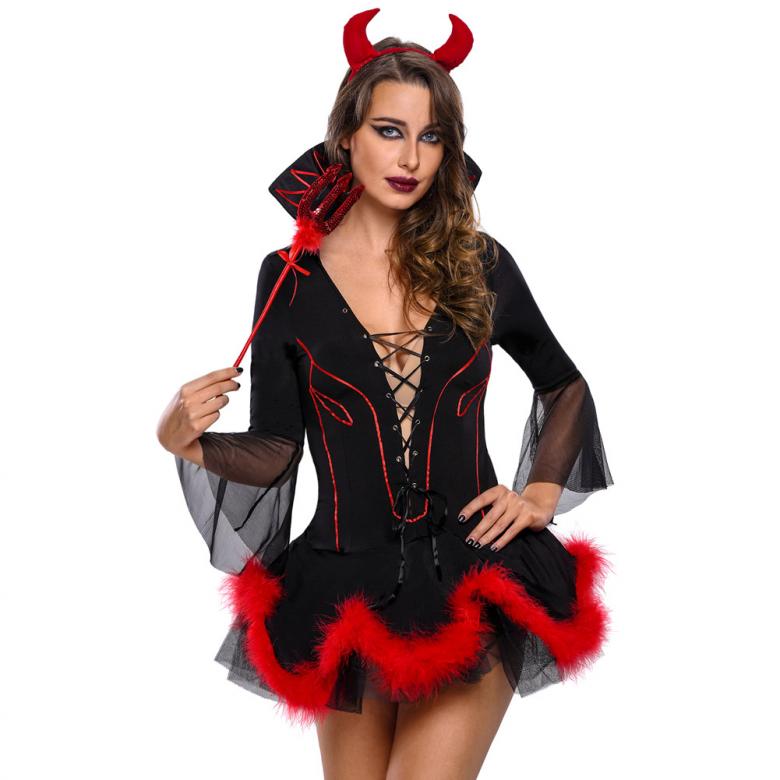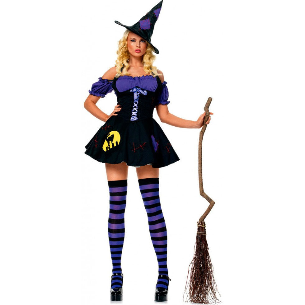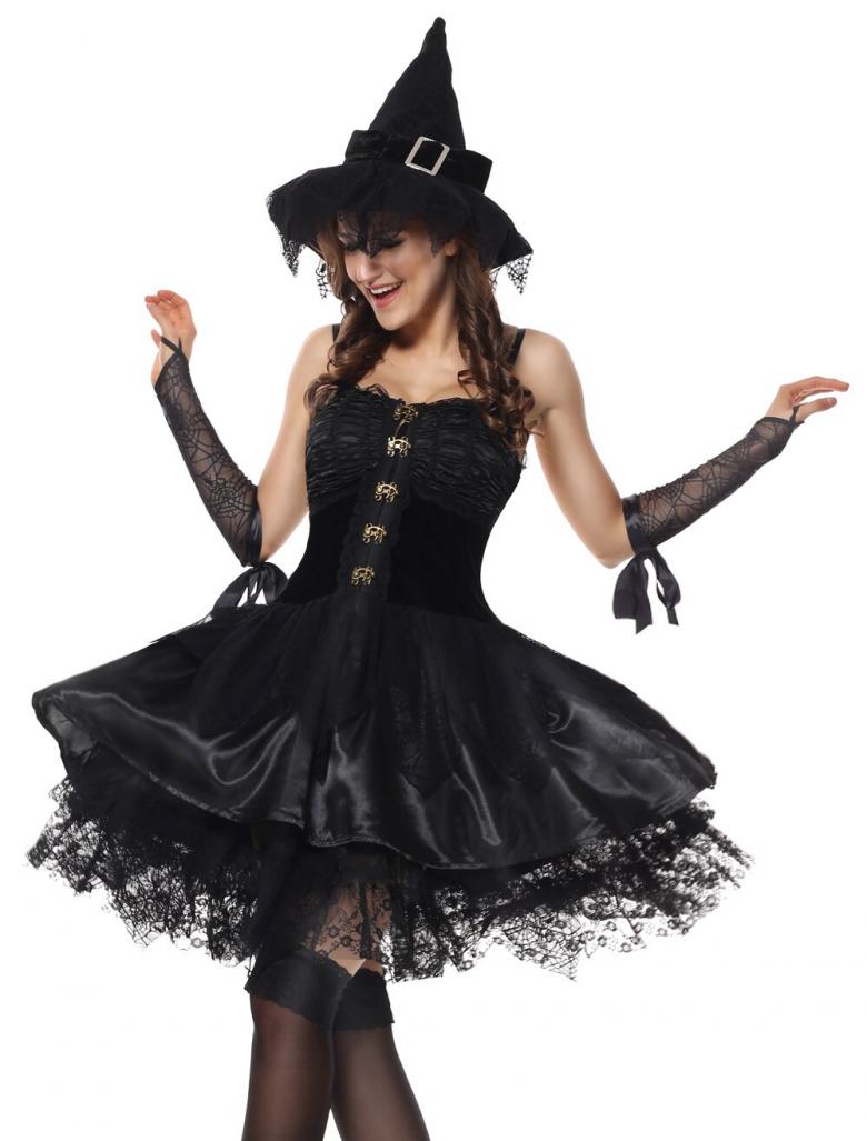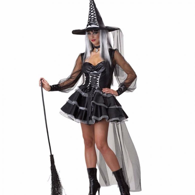 Il y a le style de la sorcière flirteuse sexy en mini-jupe avec une taille accentuée, les chaussettes à rayures ou à carreaux sont un must. Le noir est la couleur prédominante, et l'ajout servira de ton rouge sang, bordeaux, lilas, sans oublier l'attribut principal - un balai.