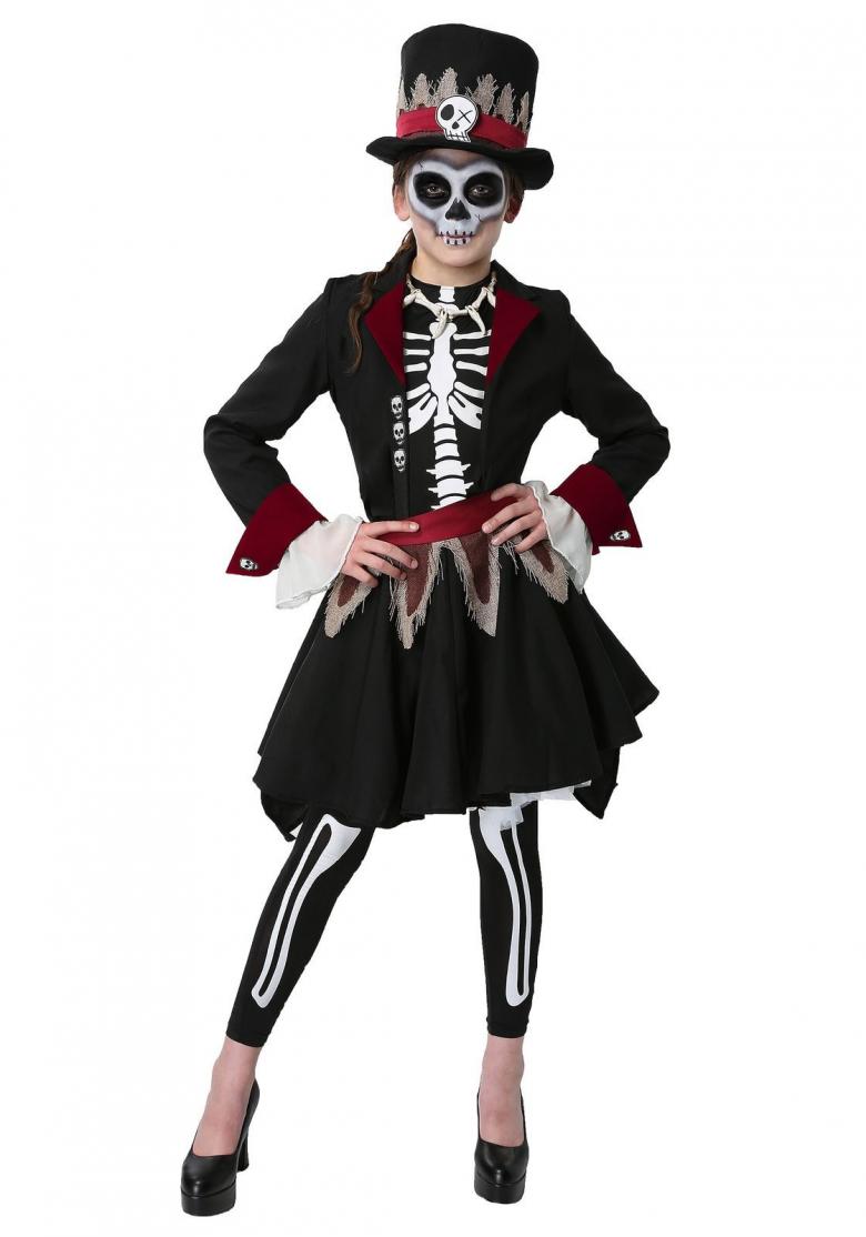 La tenue de pirate convient aussi bien aux hommes qu'aux femmes. Le bandana, les symboles effrayants sur la chemise, la dague, le cache-œil et les bottes. Une solution classique et économique est le squelette. Découpez des os dans du papier, cousez-les sur des vêtements noir anthracite et procédez au maquillage.