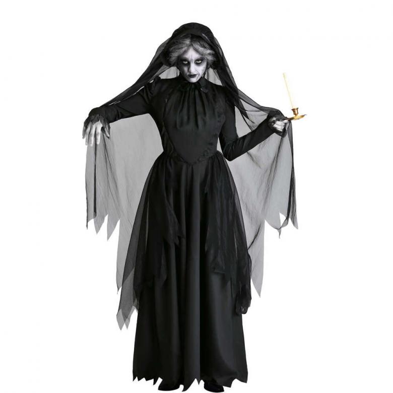 La religieuse porte un sweat à capuche noir avec des inserts blancs. L'impression répugnante est créée par les signes occultes de saignement. Certains ont recours à des versions raccourcies et vont jusqu'à dénuder leur ventre.
