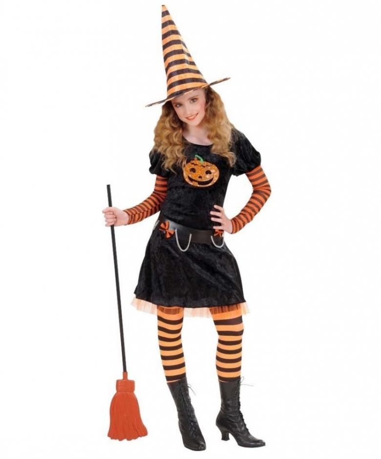 Le costume de sorcière pour Halloween est un classique intemporel. Une robe longue et sombre et une coiffe en forme de cône suffisent. Beaucoup affichent des toiles d'araignée et une araignée sur la joue et dessinent des rides.