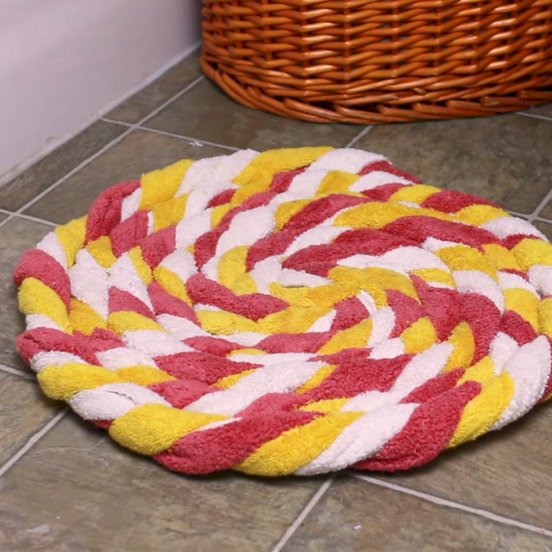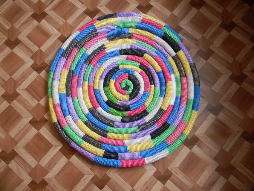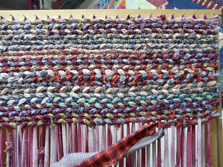 Des matériaux souples et faciles à manipuler peuvent être utilisés pour réaliser des tresses qui sont ensuite assemblées en une seule pièce. Les tresses d'une certaine épaisseur peuvent être disposées en spirale (en partant du centre), le long du périmètre d'un carré ou en serpent, pour former un motif original.