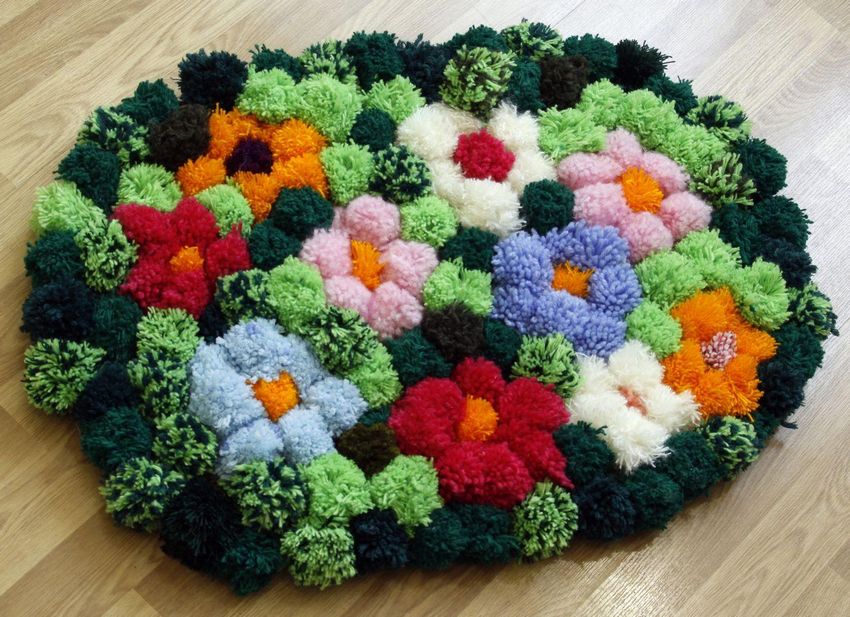 Pour fabriquer un tel engin, vous aurez besoin d'une maille à petites cellules, et mieux encore, d'un matériau polymère durable. Un fil de laine dense et doux est utilisé pour fabriquer des pompons, il en faut un grand nombre, proportionnel à la taille du produit fini.