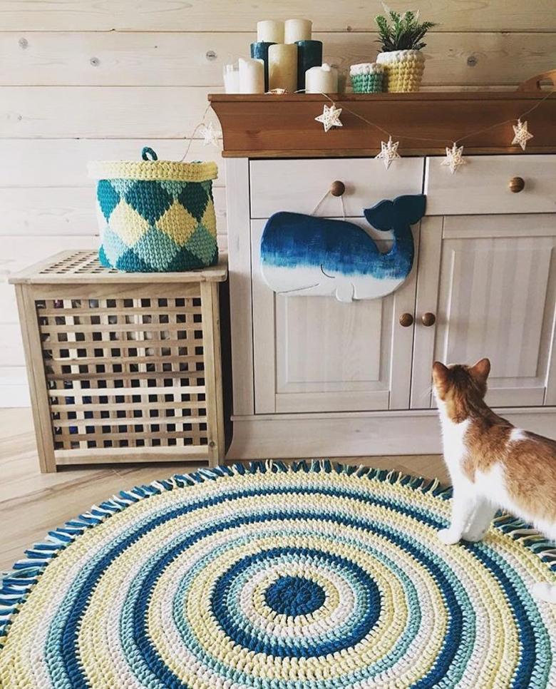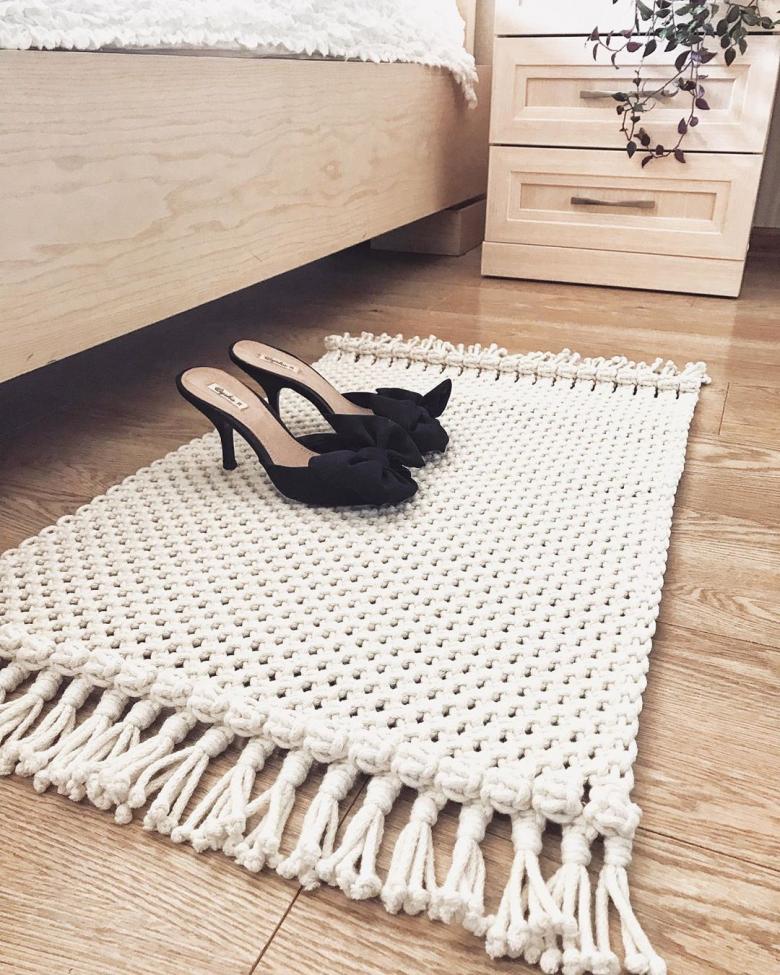 La technique unique de tissage avec des cordes ou des fils épais permet de créer des tapis inhabituels et ajourés. Même ceux qui ne connaissent pas la technique peuvent facilement en apprendre les bases, mais il est préférable de commencer par une idée simple avec un motif de nœuds léger, puis de progresser vers une pièce plus élaborée.