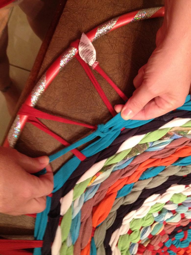 Un hula hoop en métal ou en plastique sera un accessoire pratique pour le tissage circulaire afin de créer des objets intéressants. Des cordons serrés sont fixés au bord et croisés au centre d'un cercle improvisé, et à partir du centre, le matériau préparé est tissé dans la base formée.