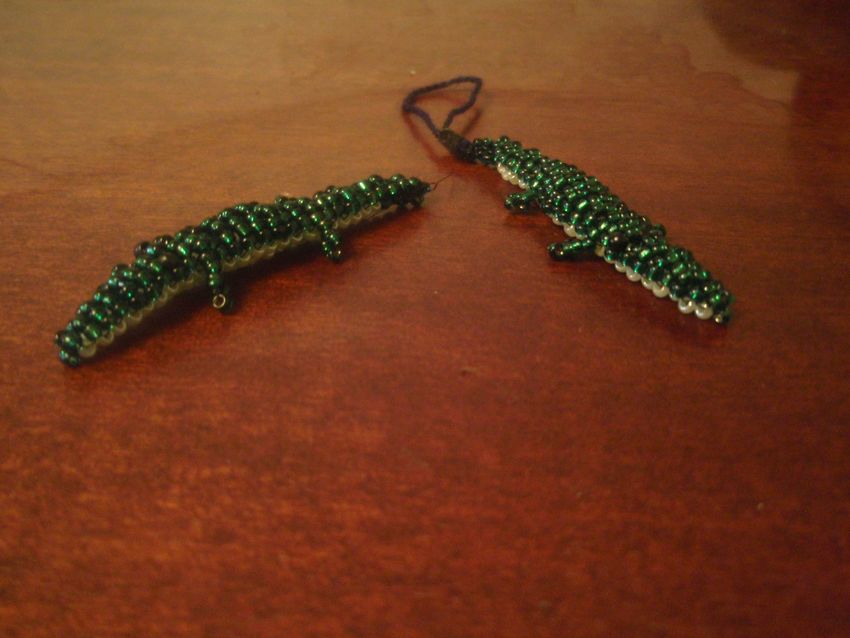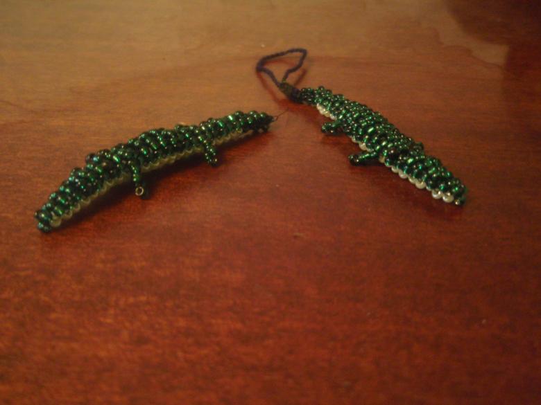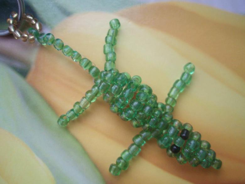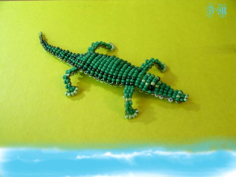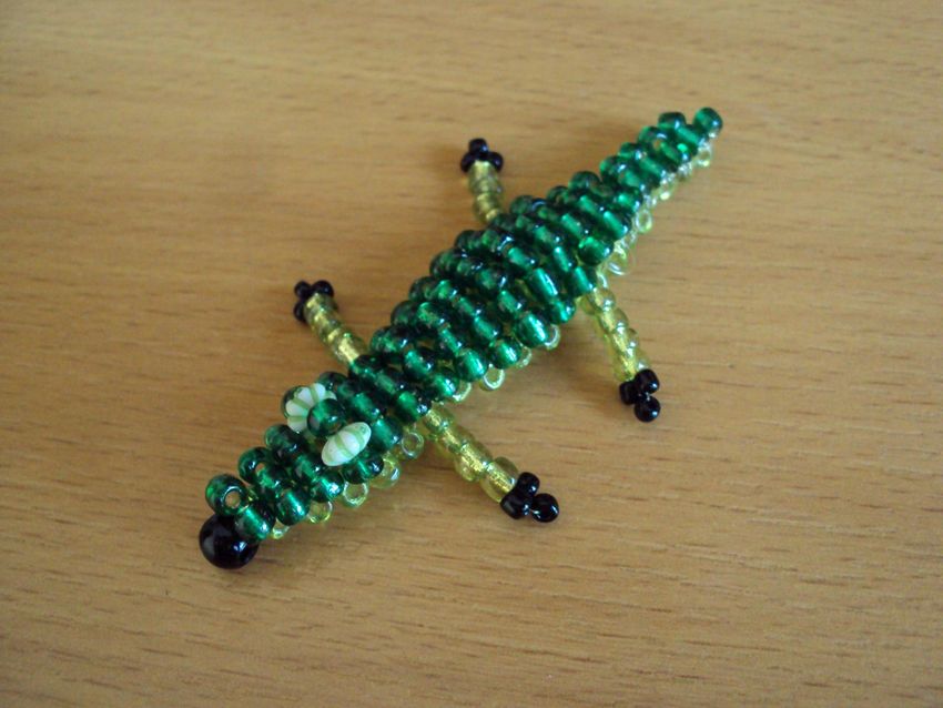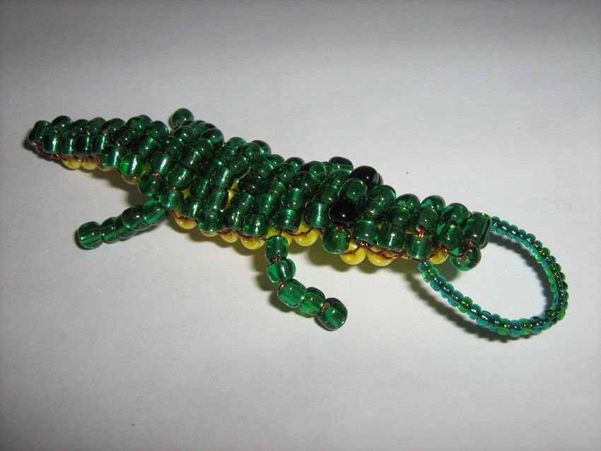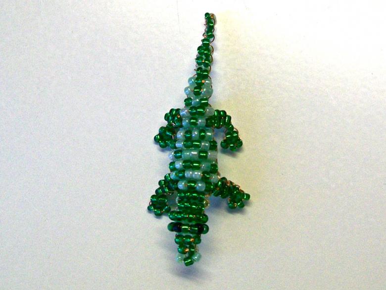 Cette perle en forme de crocodile est fabriquée à partir d'une seule pièce de base. Il est recommandé d'utiliser une grande pièce avec la possibilité de la couper une fois l'assemblage terminé. On peut se fier à de nombreux modèles. Certains sont construits sur le début de la queue, d'autres à partir du museau, mais dans tous les cas vous obtenez un bel accessoire personnel, qui est demandé par les adultes ou les enfants.