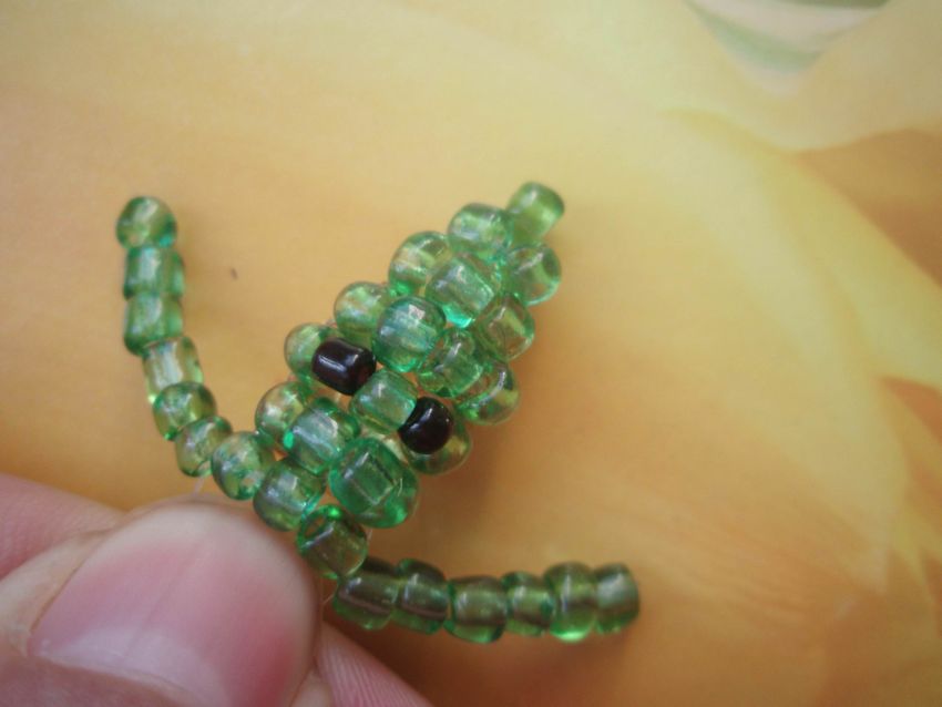 - Mais au neuvième rang, on ajoute quelques perles foncées. Ils forment les yeux du reptile.