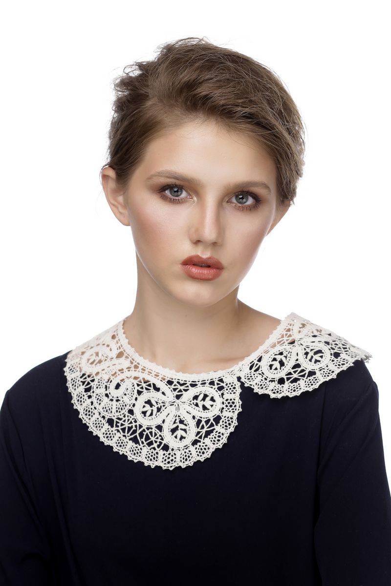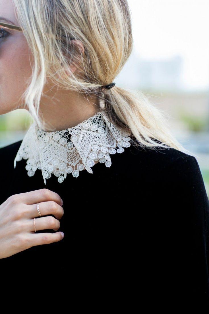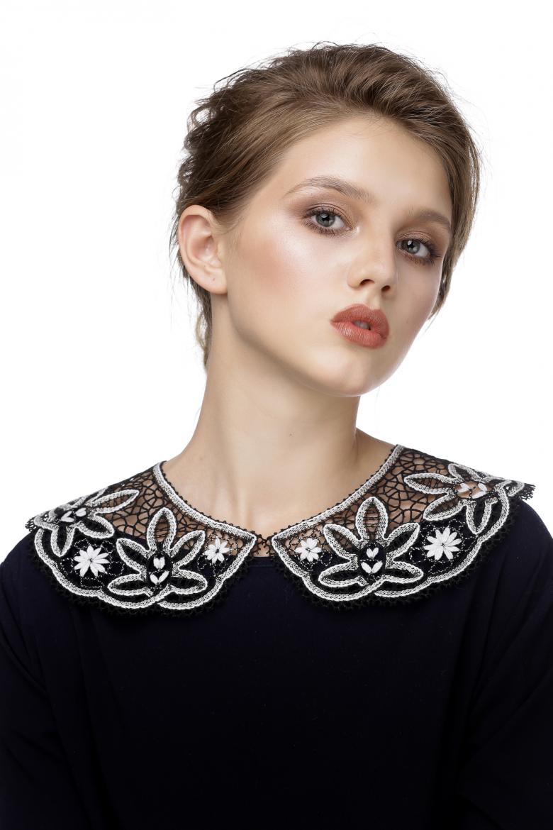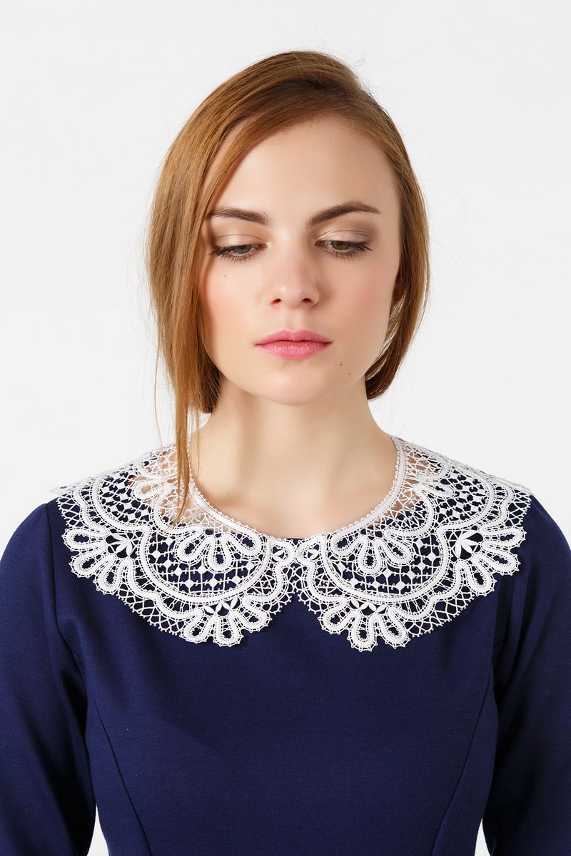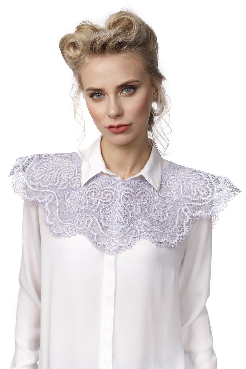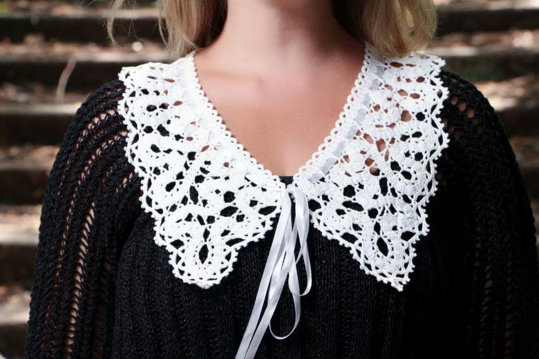 Un col en dentelle est l'un des accessoires les plus insolites de la garde-robe d'une femme. Il peut être utilisé aussi bien avec des tenues de soirée qu'avec des tenues décontractées. Il rend toute tenue unique et gracieuse. On remarque que la dentelle la plus fine sur le col souligne la beauté de l'image et est très efficace.