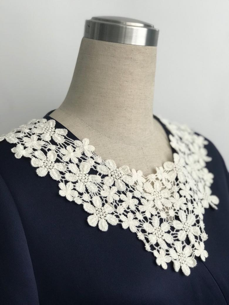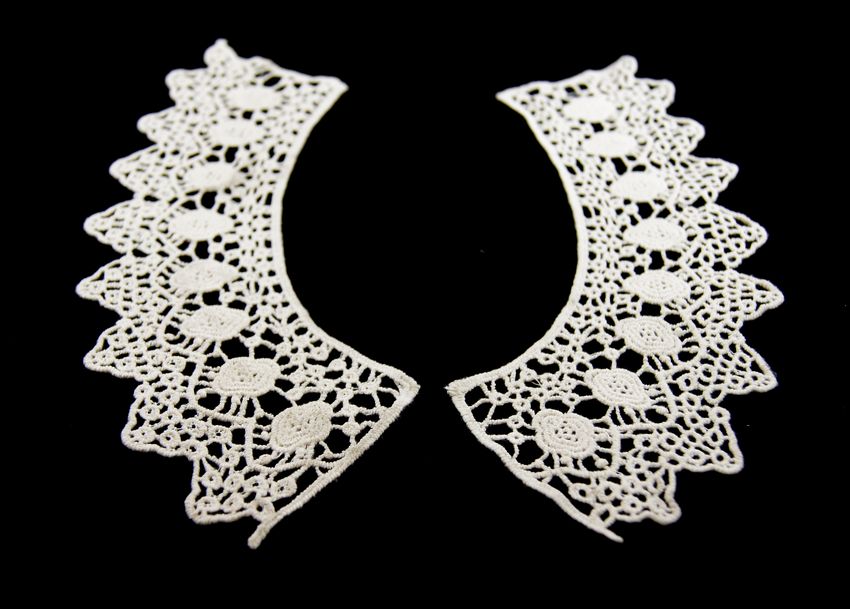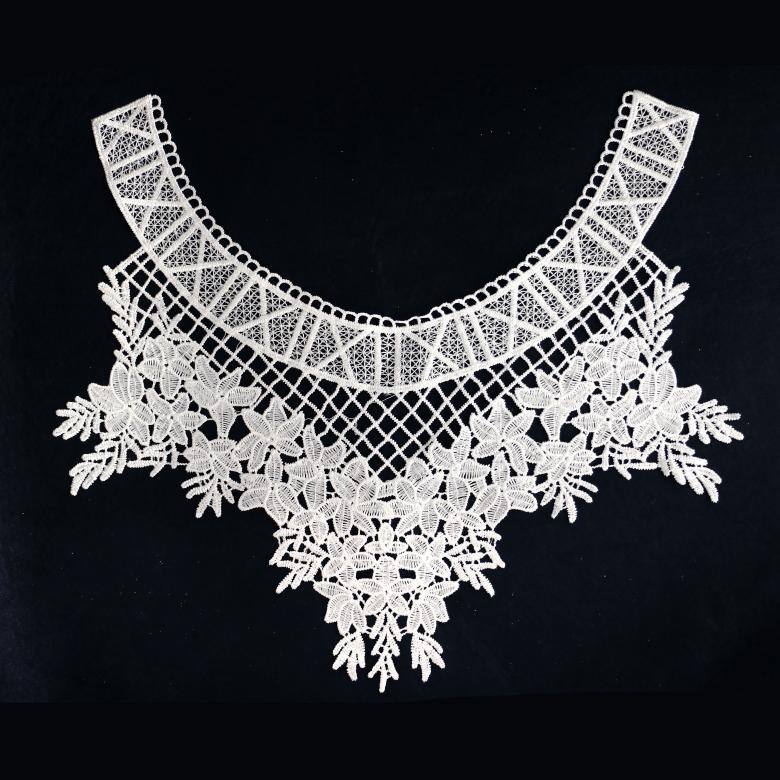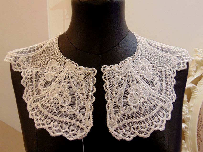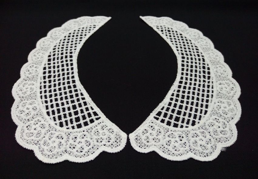 Les cols en dentelle française sont célèbres pour leurs détails et leur légèreté. Ils rendent l'apparence d'une femme délicate et romantique. Tissé dans un style d'inspiration vintage, les toiles d'araignées délicates et gracieuses sont spectaculaires sur des tenues austères de conception classique.
