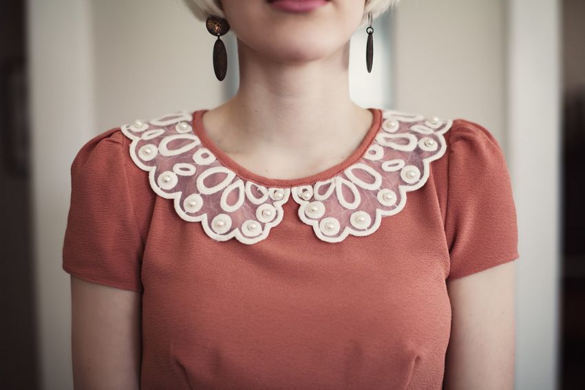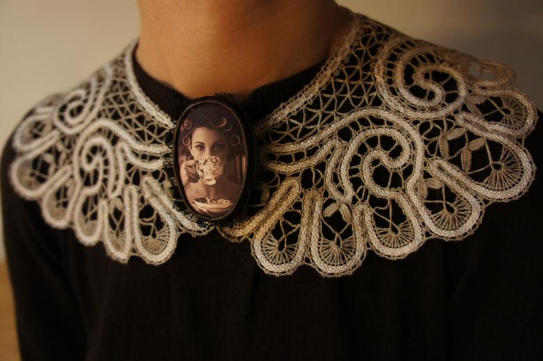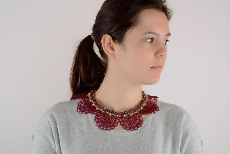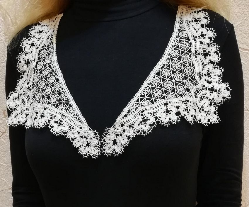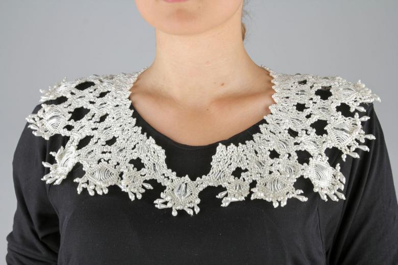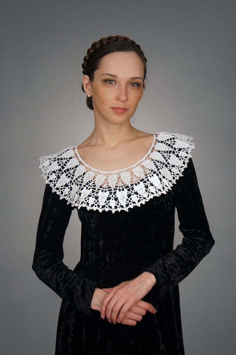 Ce collier conviendra à toutes les femmes. Il peut être porté aussi bien avec un pull qu'avec une blouse. Une robe avec un col en dentelle comme celle-ci serait incroyablement luxueuse.