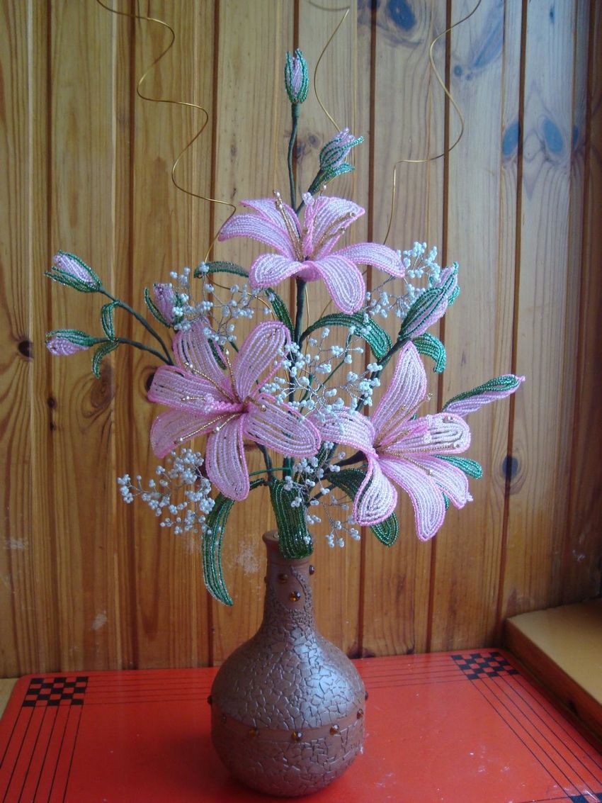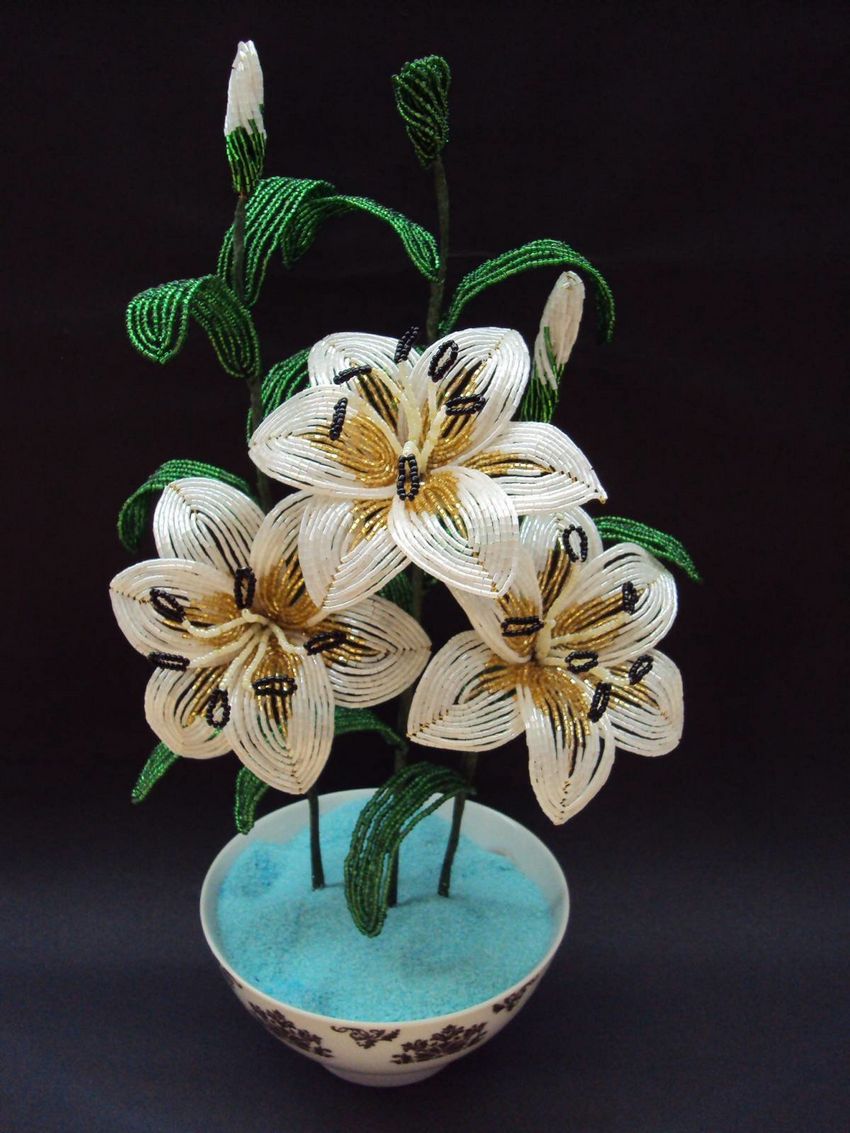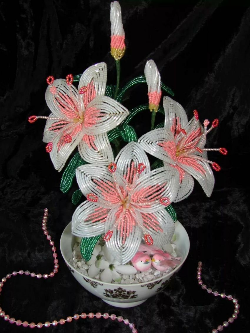 Lys perlés avec des perles - cours de maître sur la fabrication de fleurs, étape par étape