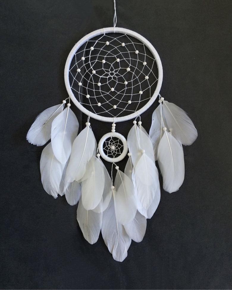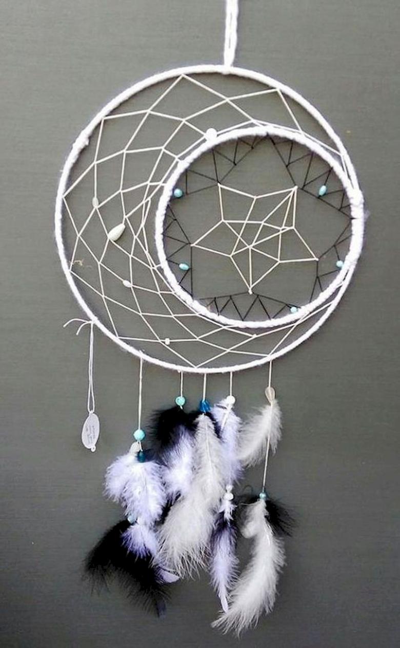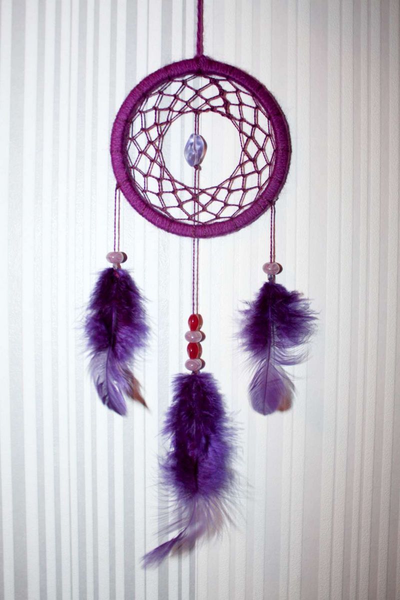 Vous pouvez en faire un ou plusieurs, en utilisant des plumes, des peluches ou des glands de fil. De plus en plus utilisé comme bijou décoratif, le capteur de rêves peut faire partie d'une tenue sous forme de boucles d'oreilles ou de pendentif. Il décorera également la chambre à coucher ou le salon, sera un cadeau original et mignon fait de vos propres mains.
