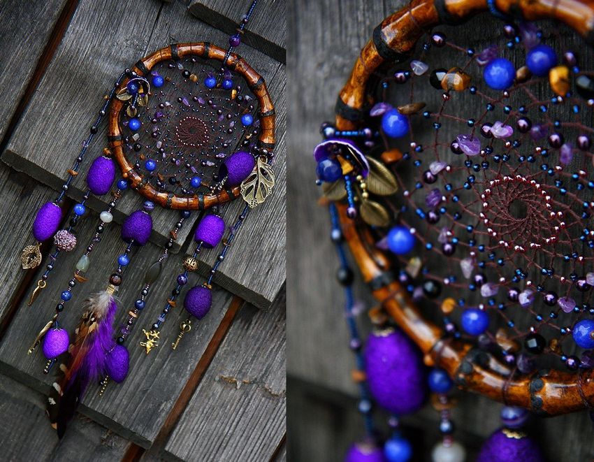 Le schéma de tissage d'un capteur de rêves de ses propres mains peut être similaire pour tous, mais les méthodes peuvent présenter des différences. Ainsi, certains préfèrent tisser du fil avec une grande aiguille, et d'autres aiment utiliser dans le processus de tissage des rubans, de la dentelle, des cloches et tout autre élément qui leur est venu à l'esprit et a inspiré leur imagination.