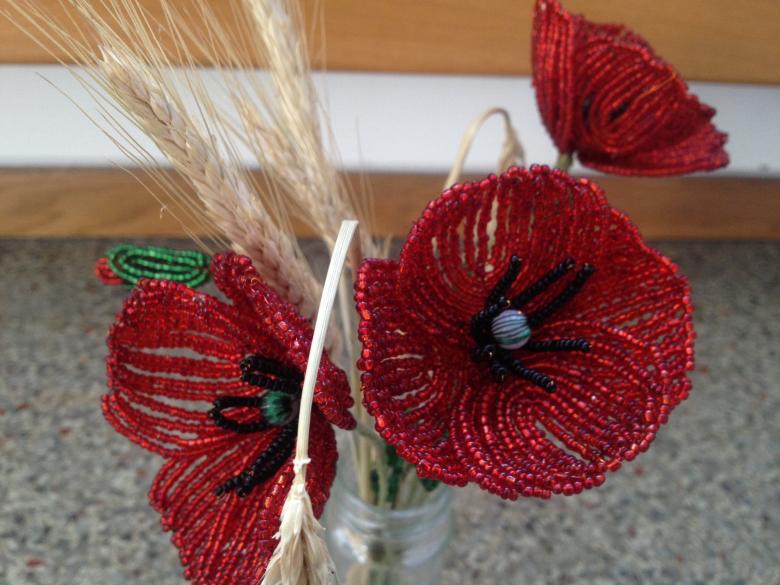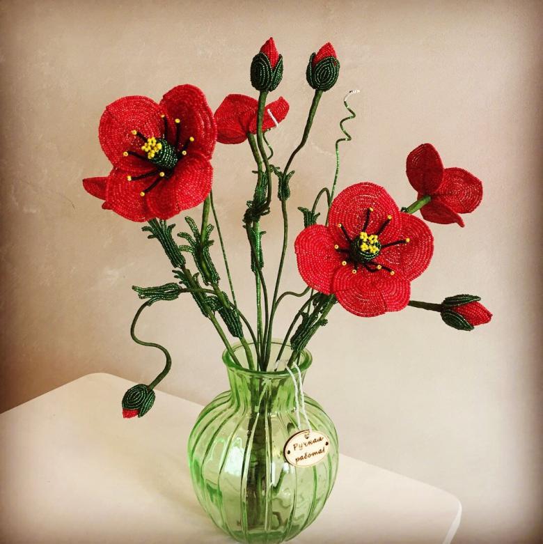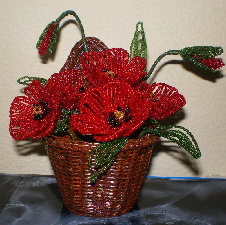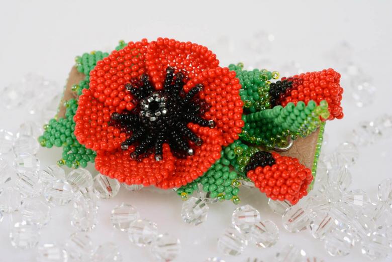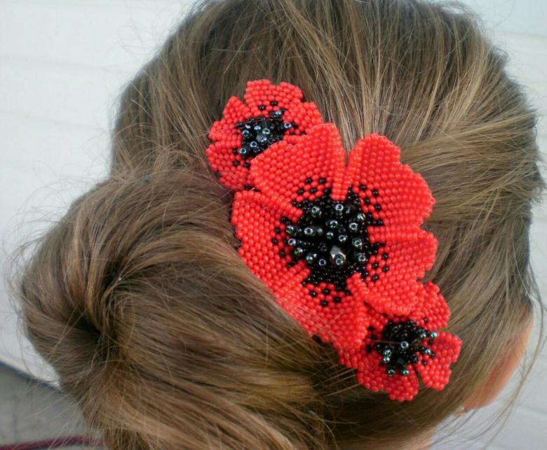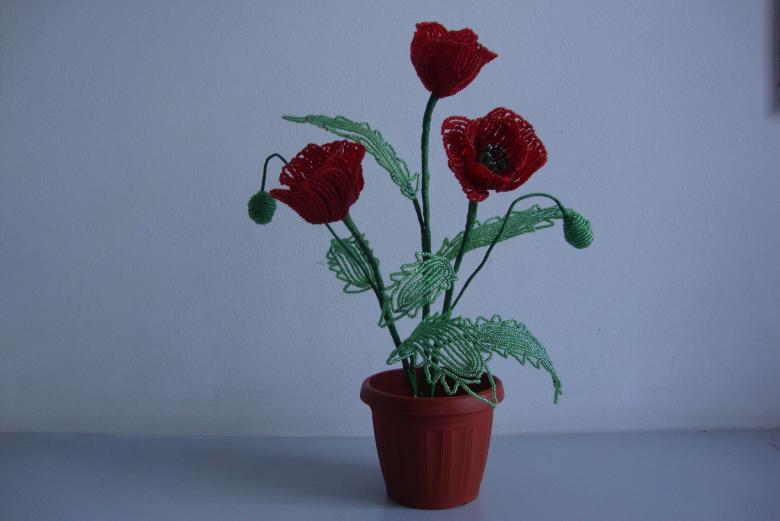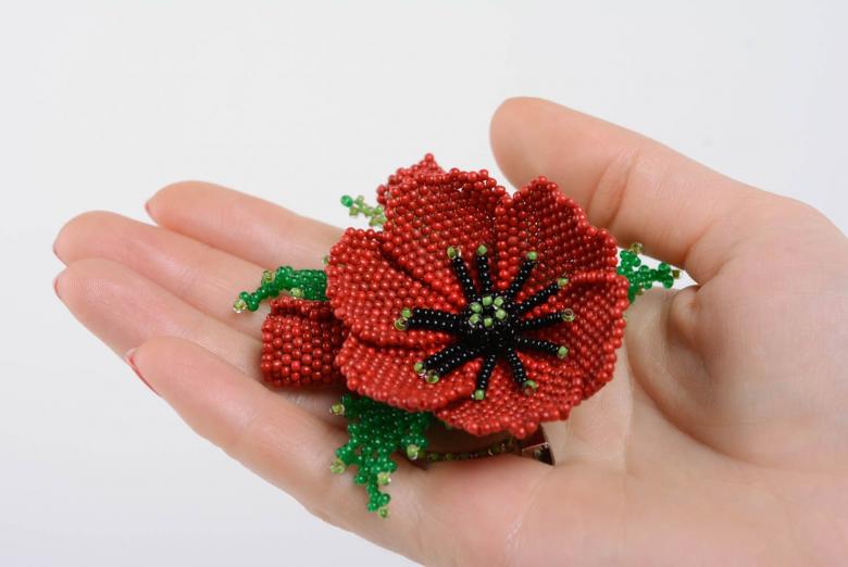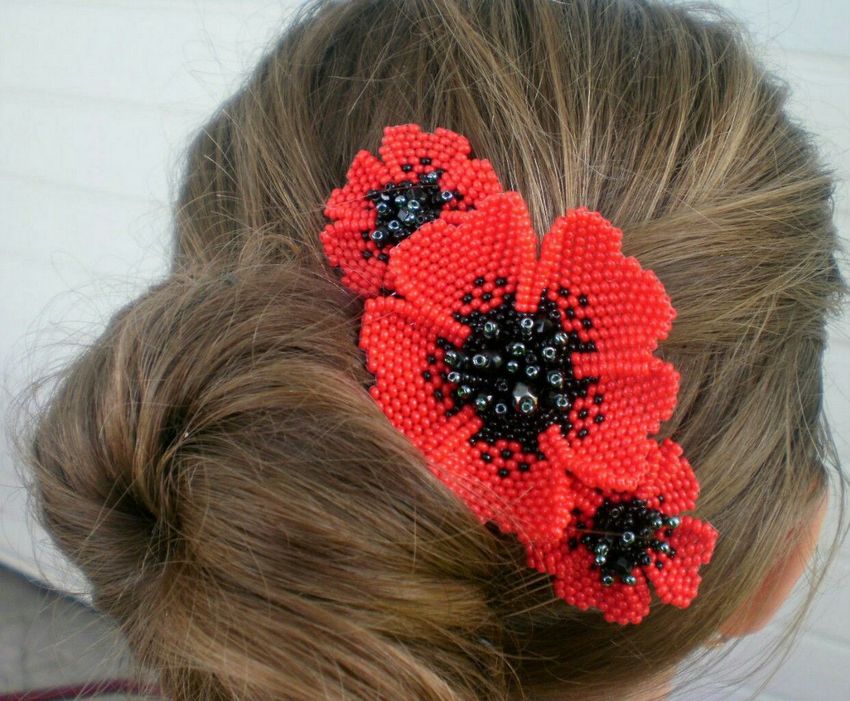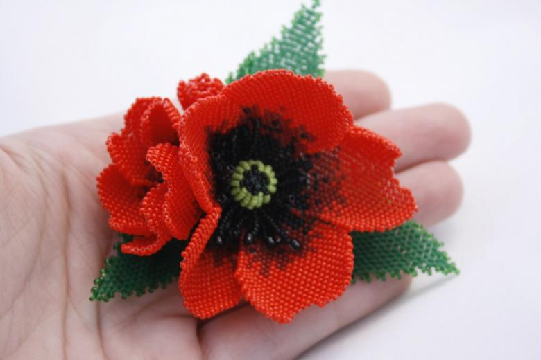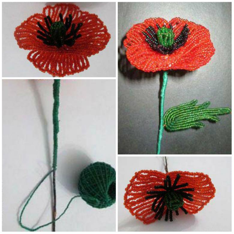 Un grand nombre de techniques sont utilisées pour le tissage des coquelicots. Les plus populaires sont la technique française et la technique du bouclage. Tout d'abord, tous les composants de la fleur sont fabriqués séparément : les pétales, le cœur du bouton, les feuilles, les étamines. Les différentes parties sont ensuite assemblées pour former une fleur unique et volumineuse.