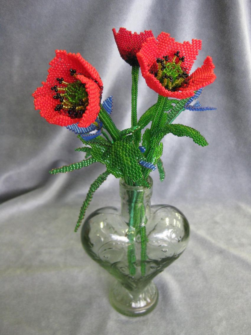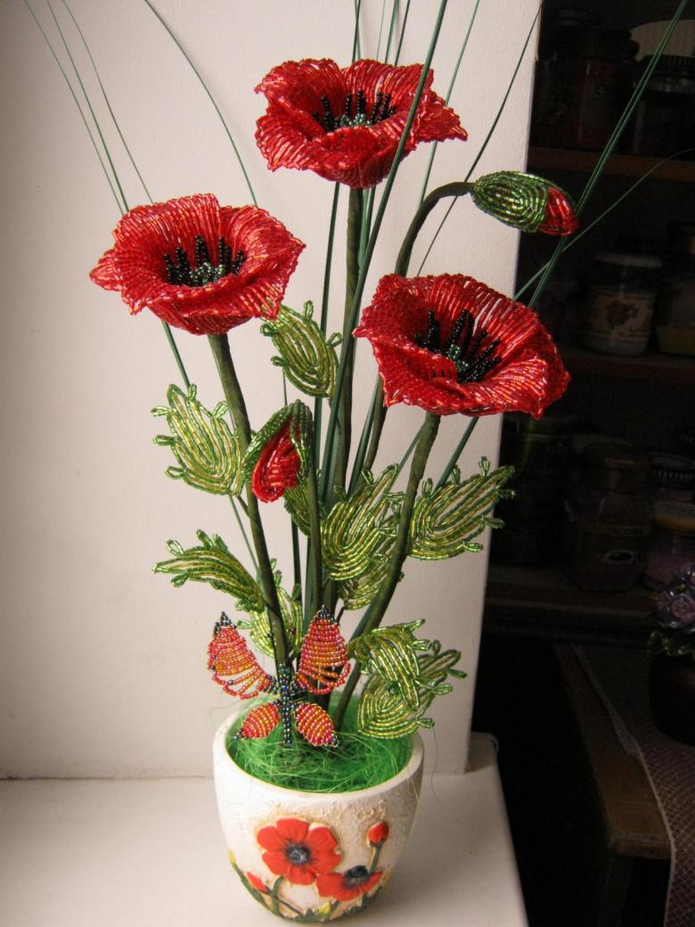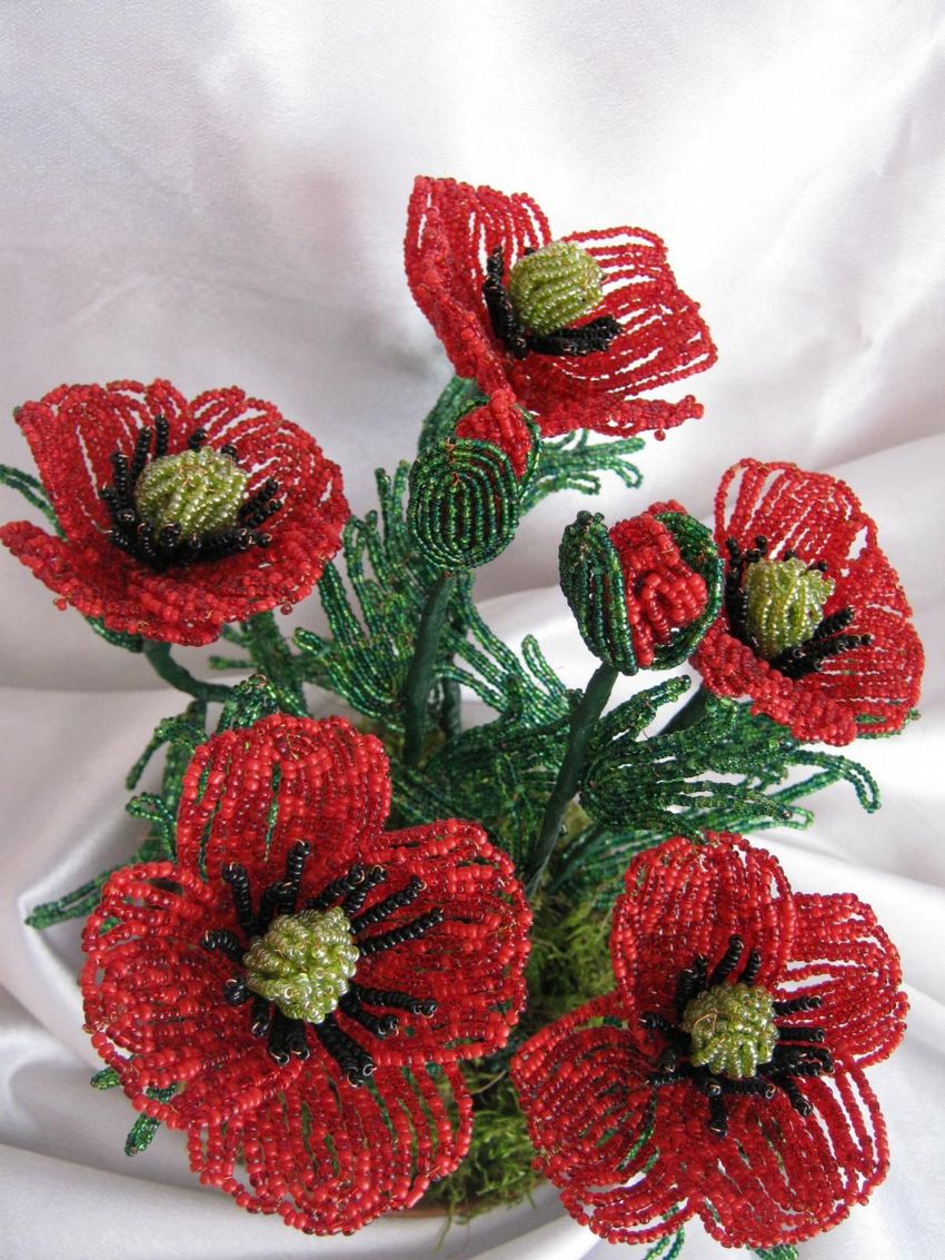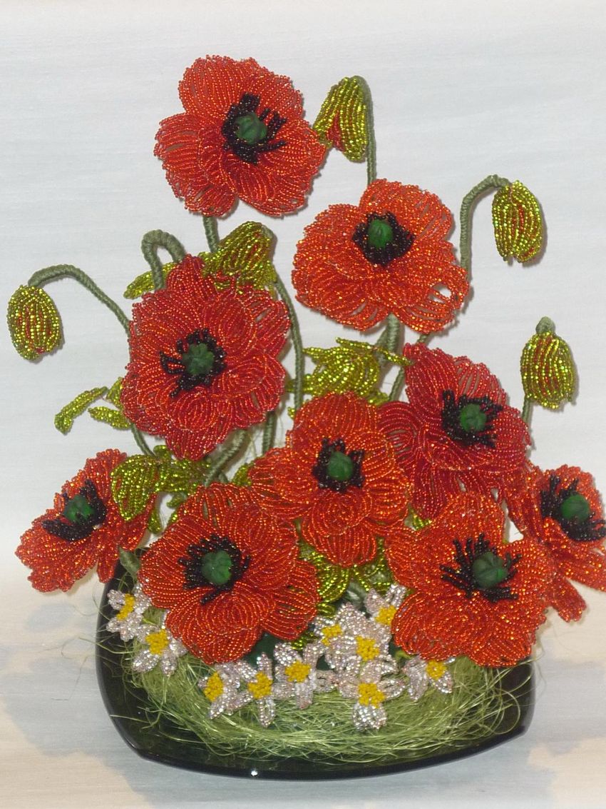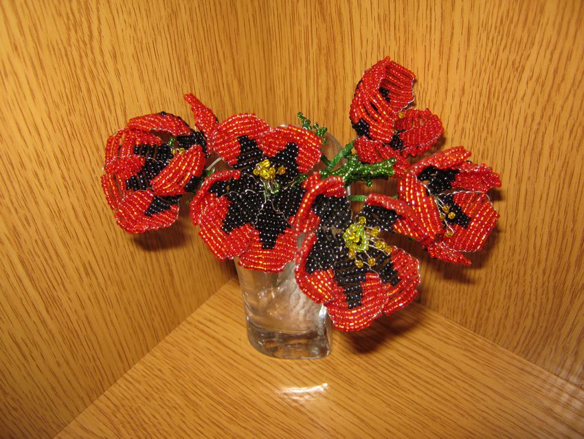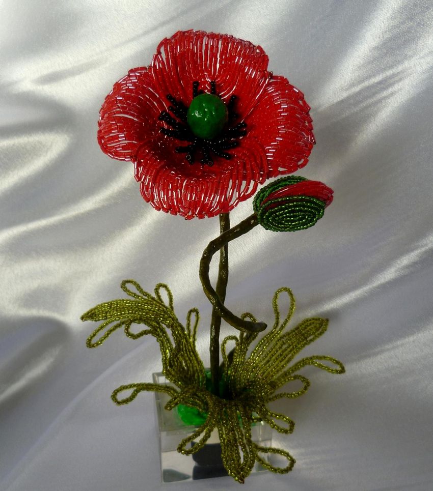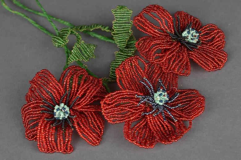 Cours de maître sur la fabrication de coquelicots à partir de perles - techniques de tissage, schémas pour l'artisanat tridimensionnel et de surface.
