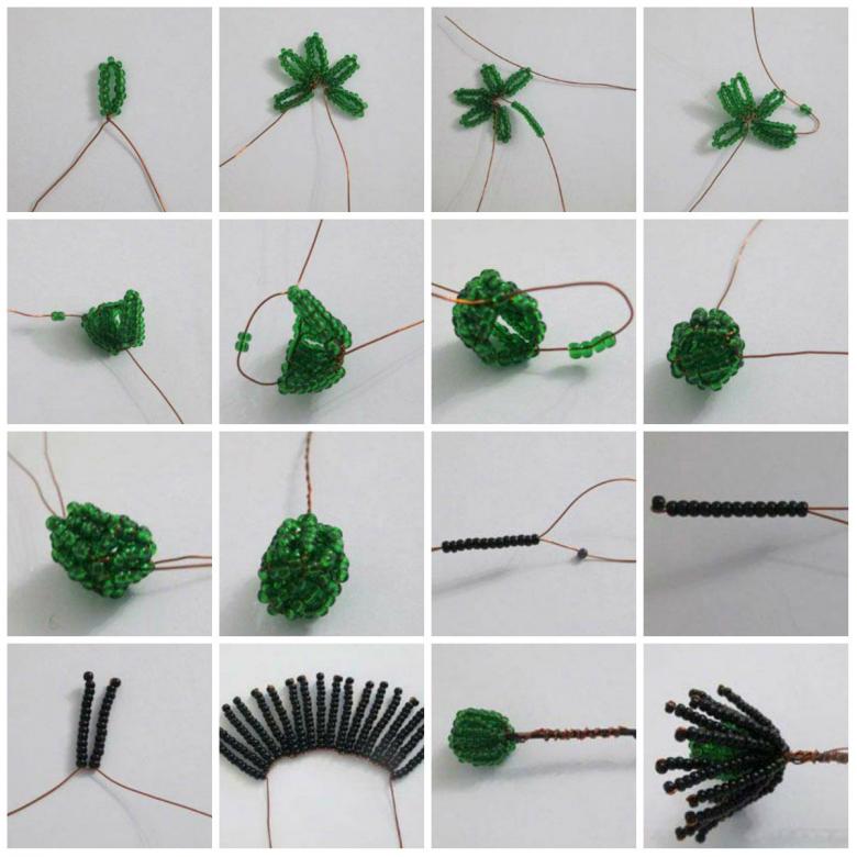 - Utilisez ensuite le fil pour relier toutes les lignes de perles entre elles afin de former une feuille.