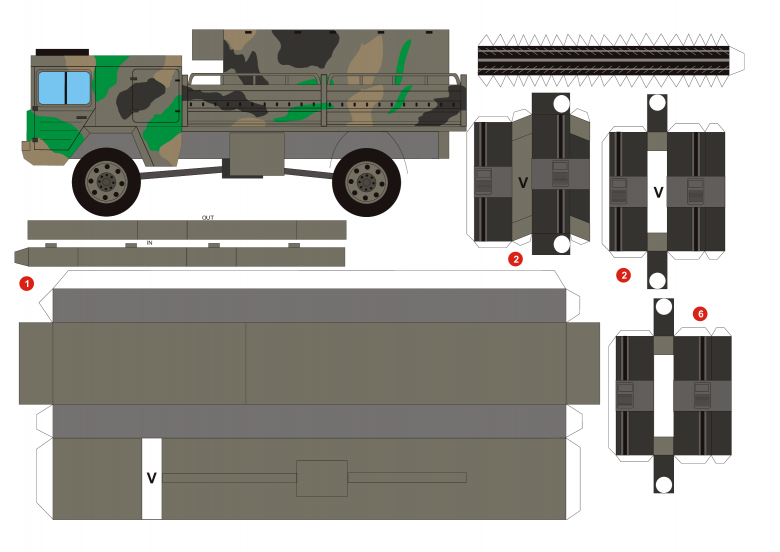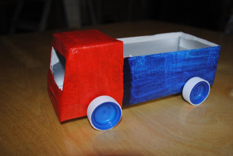 - Étape 1. Quatre carrés, trois rectangles de taille égale sont découpés pour la future cabine du camion.