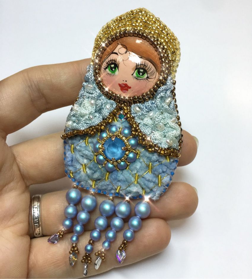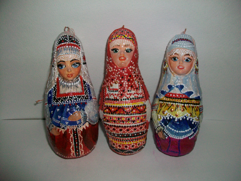 Selon une version, Vasily Zvezdochkin et Sergey Malyutin, en 1890, ont rendu le jouet plus compréhensible et plus joli, en créant l'image d'une fille, rousse et joyeuse, en robe d'été et foulard. Ayant investi en elle la bonté même et une partie de leur âme, qui de génération en génération a été une joie pour les yeux.