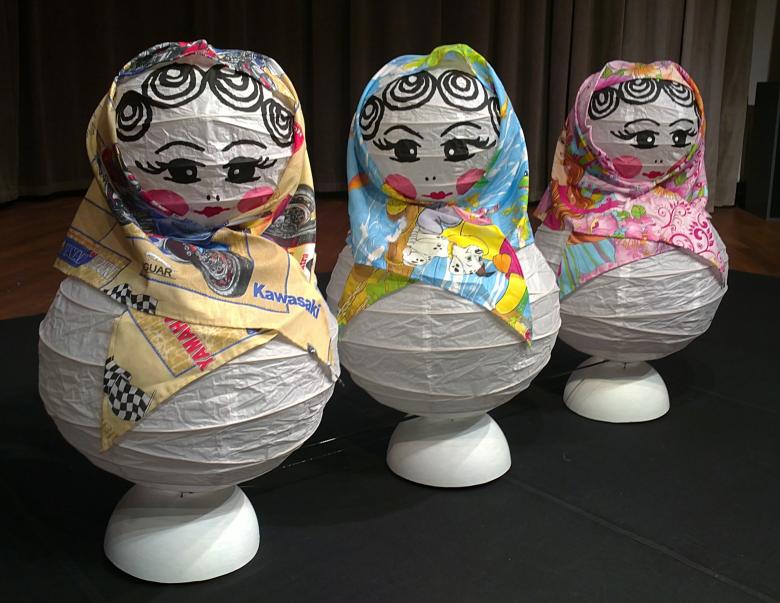 Une poupée gigogne fabriquée à partir de matériaux recyclés