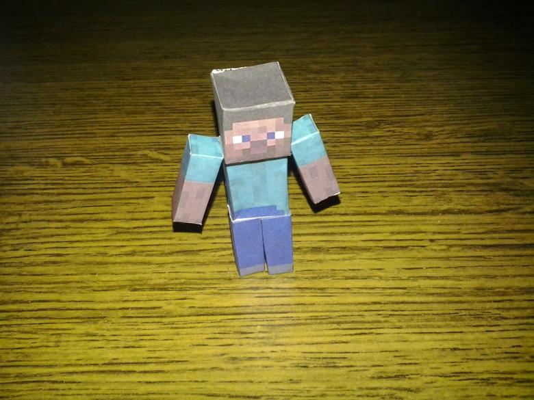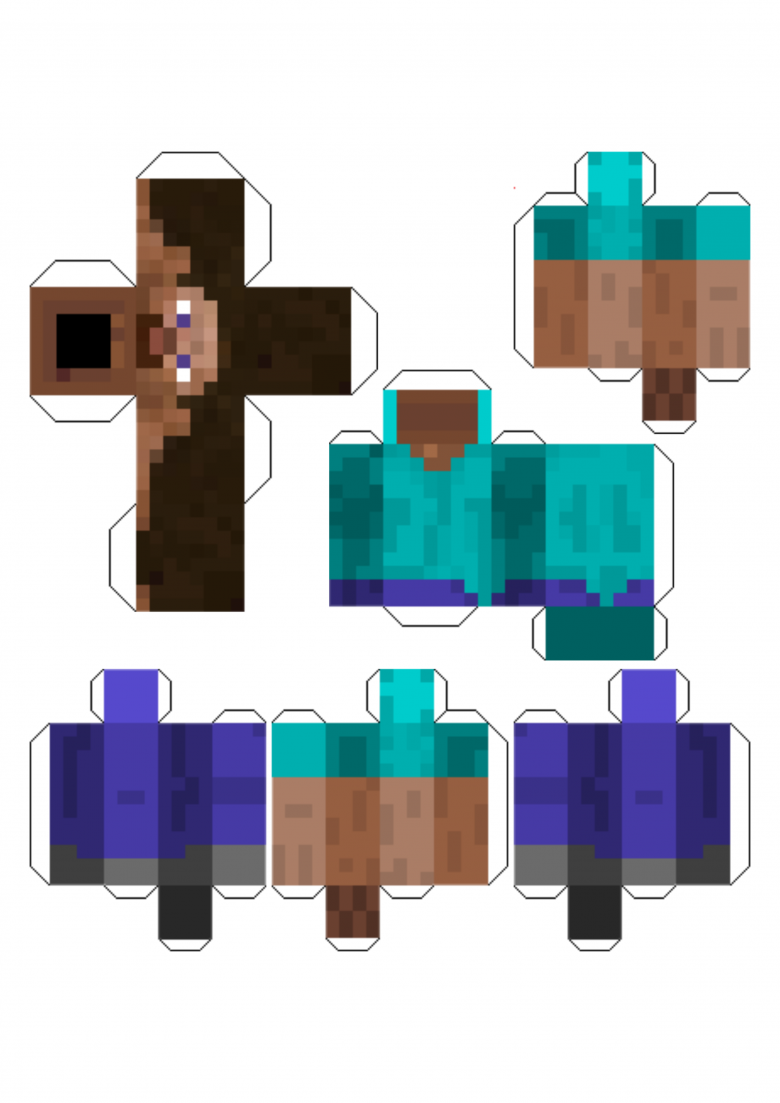 C'est la même chose qu'avec les blocs. Tout d'abord, vous devez télécharger et imprimer un modèle du personnage que vous avez choisi. Pour l'instant, c'est Steve. Là encore, il est préférable d'imprimer en couleur, mais si cela n'est pas possible, vous devrez travailler à la main. Le schéma fait à la main ou imprimé doit être découpé et collé correctement. Si vous faites preuve d'imagination, vous pouvez même faire bouger Steve !