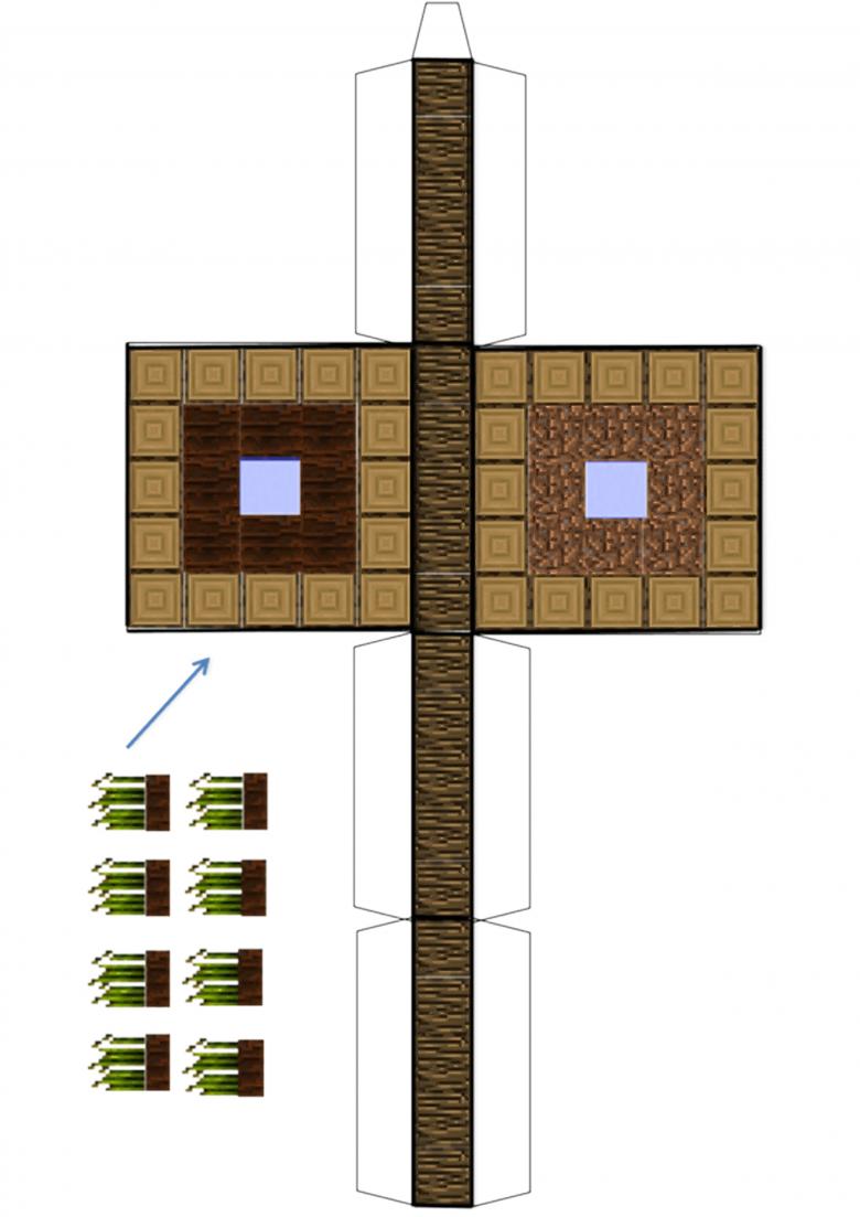 En parlant du propriétaire. Une fois la maison complètement aménagée, il est temps de penser à ses occupants. Sans eux, la maison semblera vide et peu naturelle. Il est maintenant temps de commencer à créer l'"homme". Le personnage le plus célèbre de meincraft est Steve, il est donc temps de commencer par lui. En fait, la fabrication de ces chiffres en papier n'est pas aussi difficile qu'il n'y paraît. Ce n'est pas plus difficile que de fabriquer des blocs, et c'est parfois plus intéressant.