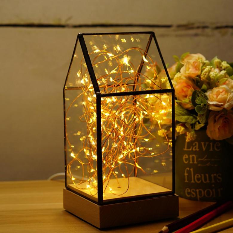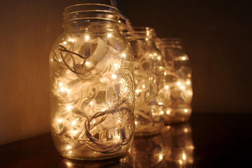 Si vous n'avez pas retiré les décorations de Noël à temps, n'hésitez pas à les utiliser pour créer une veilleuse. En plus de la guirlande, vous aurez également besoin d'un bocal en verre. Il suffit de placer la guirlande pliée au hasard dans le bocal et de le retourner. Si vous collez des autocollants phosphorescents en forme d'étoiles ou de croissants sur le pot, le design sera un plaisir à regarder même après qu'il soit éteint.