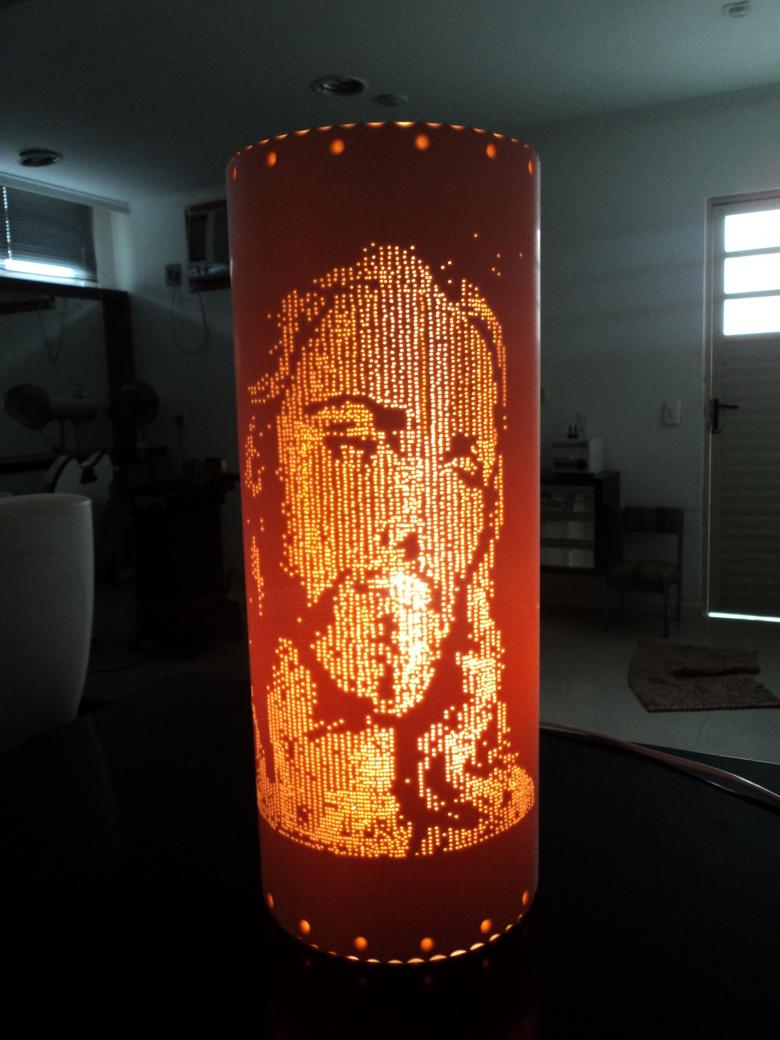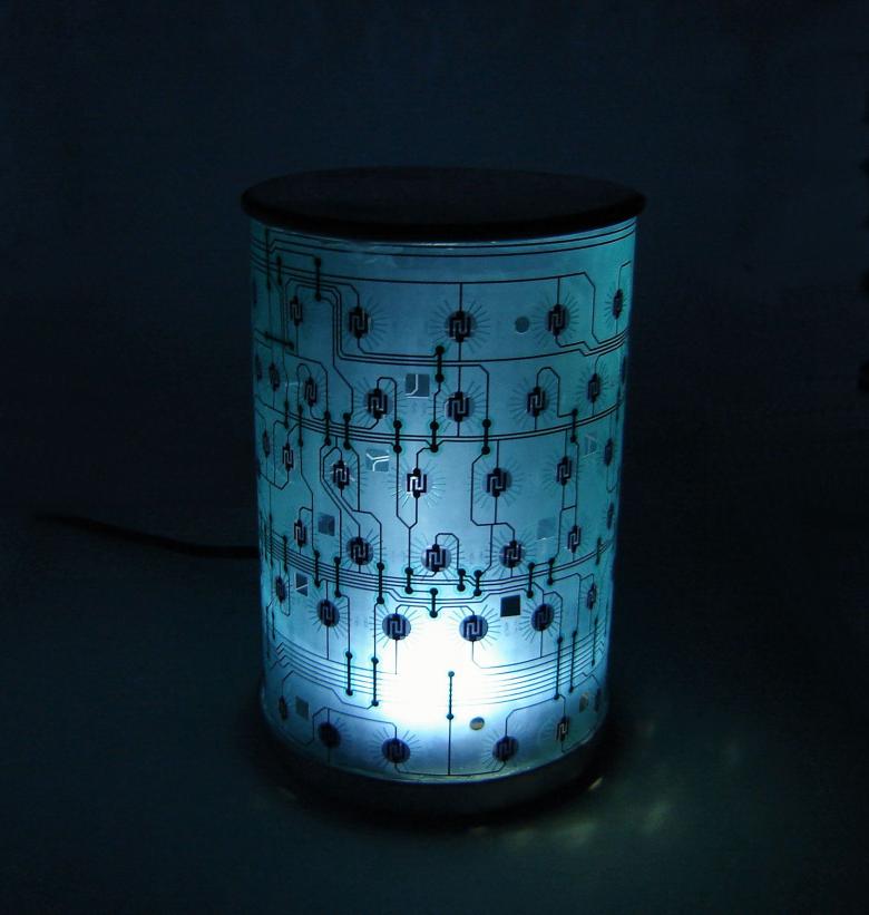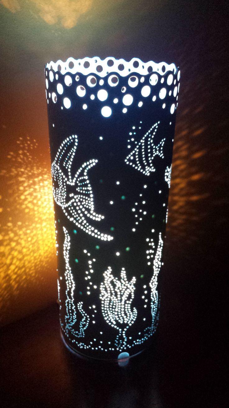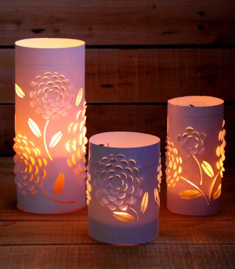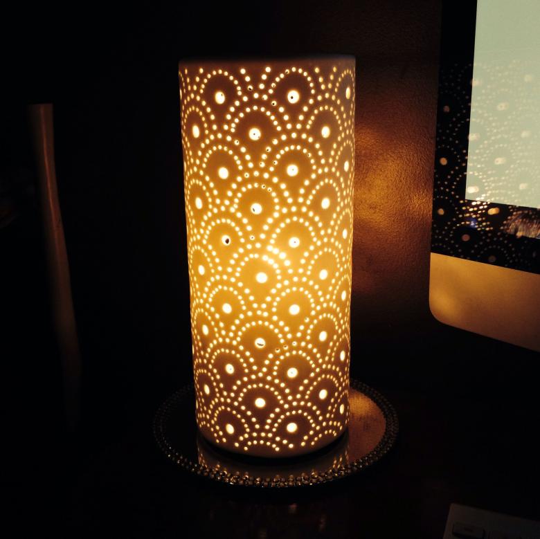 Le matériau perforé est enroulé en un cylindre. Vous pouvez y placer un support d'ampoule, une bande LED ou une guirlande de sapin de Noël. La lumière va pénétrer par les trous et dessiner des motifs lumineux sur les murs de la pièce.