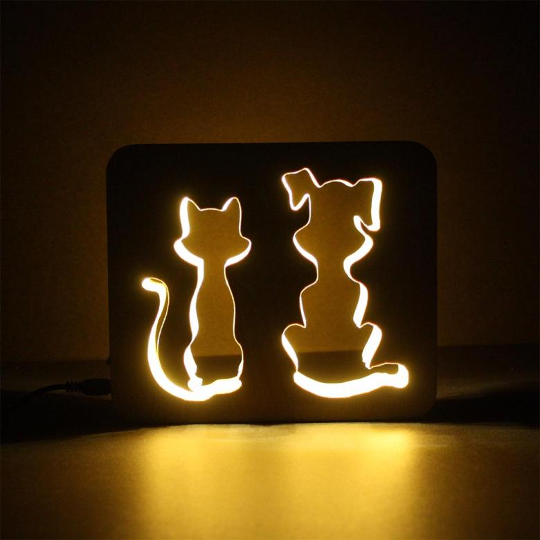 Il est très facile de fabriquer une veilleuse de nuit de vos propres mains avec des LED. Comme les LED ne chauffent pas, elles peuvent être associées à n'importe quel matériau. Vous pouvez découper n'importe quelle figure dans du carton ou du bois, la fixer au mur et placer la bande LED. La figurine éclairera et illuminera magnifiquement la pièce. Plus vous fixez de bandes, plus la veilleuse est lumineuse.