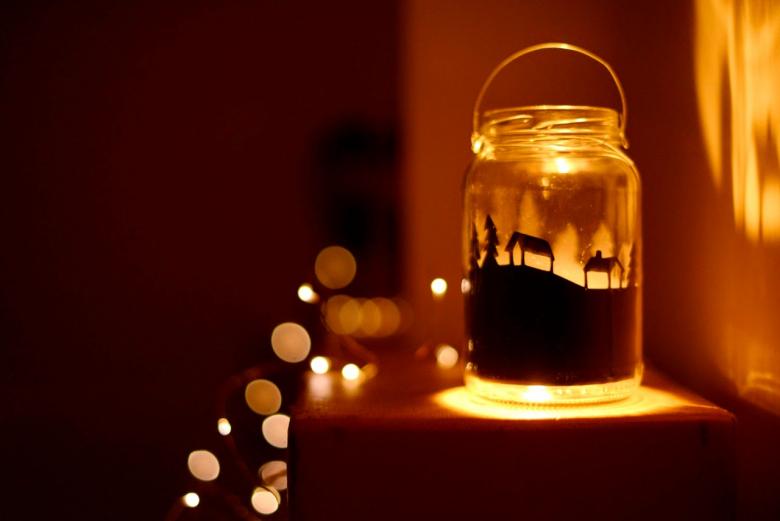 Placez une source lumineuse dans le bocal et couvrez-le avec le couvercle ; si la veilleuse doit être branchée, faites un trou dans le couvercle pour le fil.