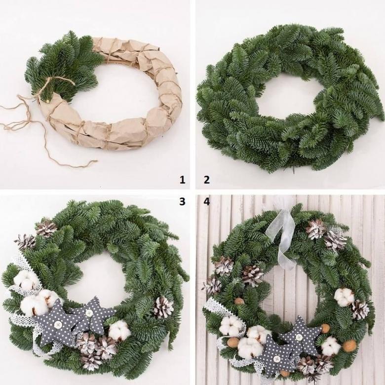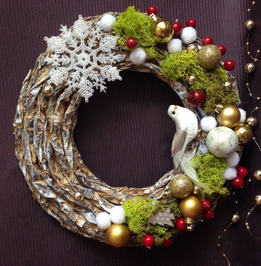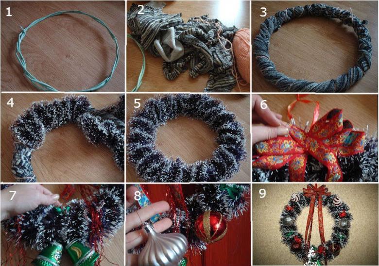 Couronne du Nouvel An par nos mains - description étape par étape de la création de décorations de Noël