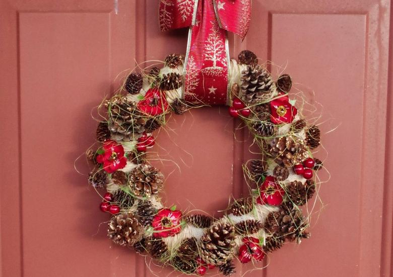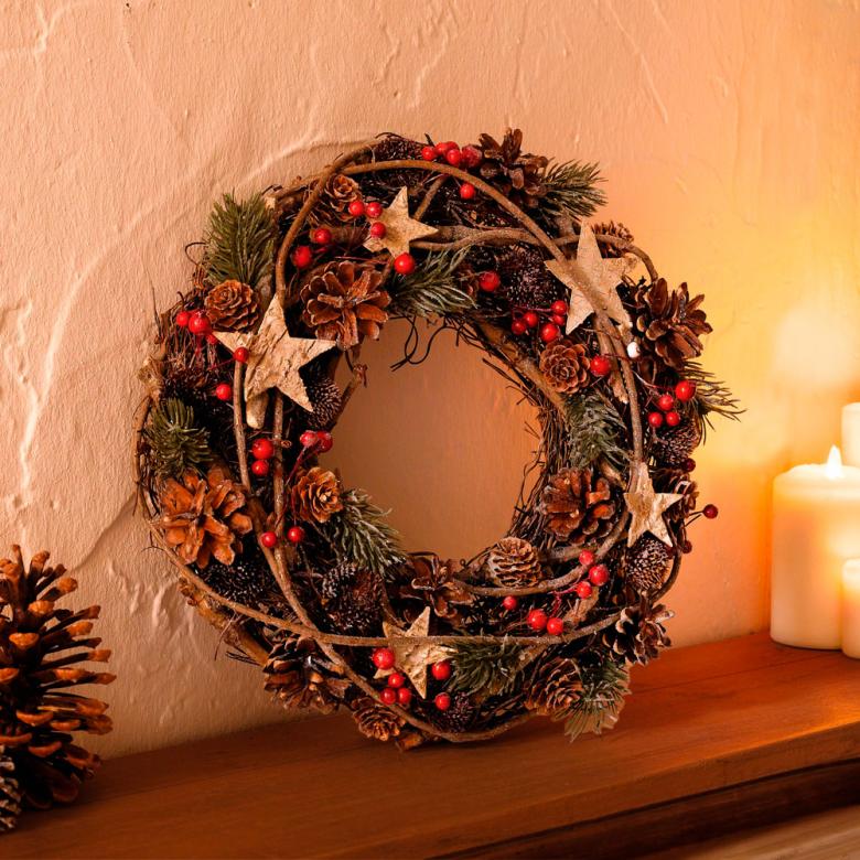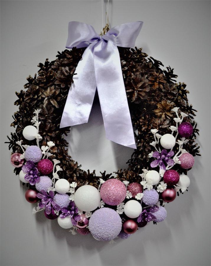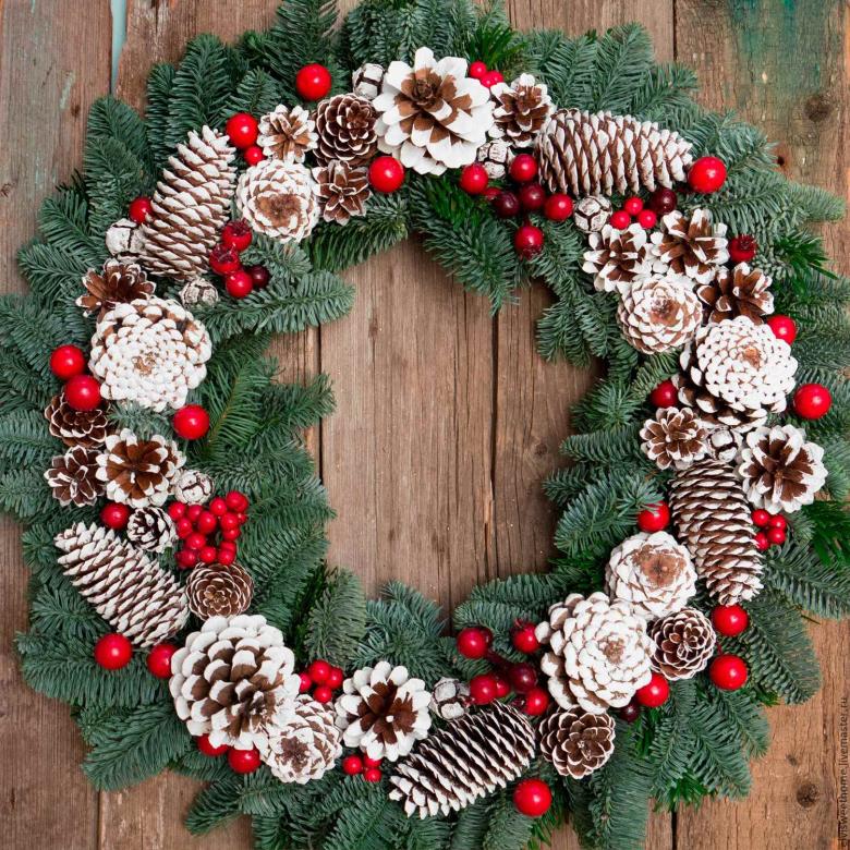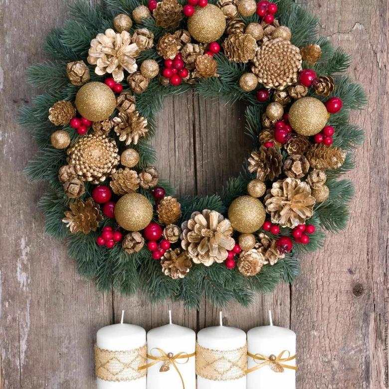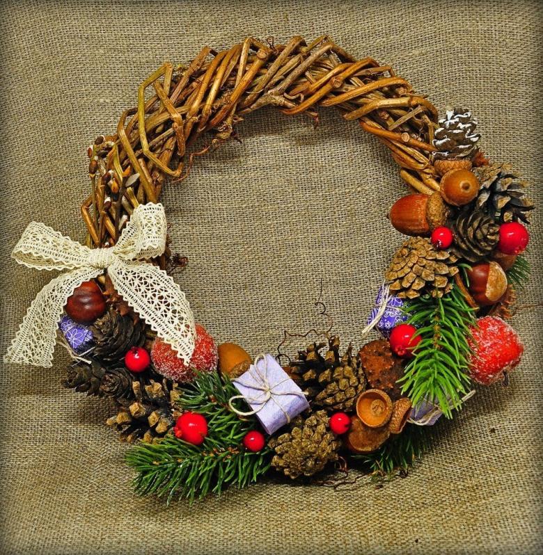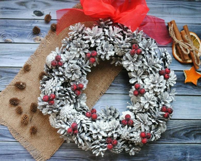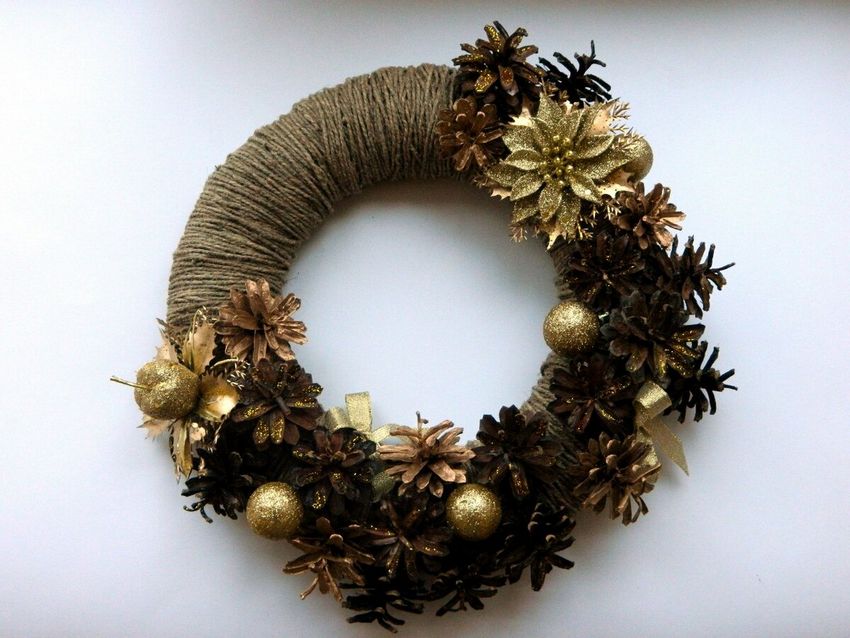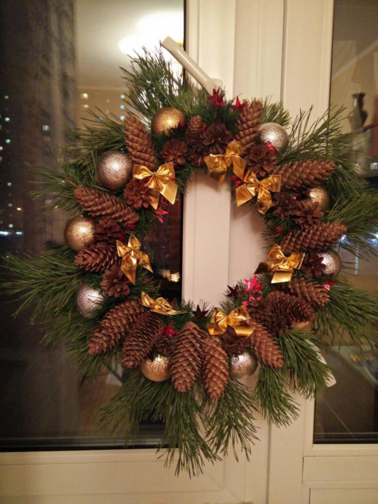 La couronne de Noël faite de cônes de vos propres mains sera une excellente décoration pour une maison où vous aimez tout ce qui est naturel.