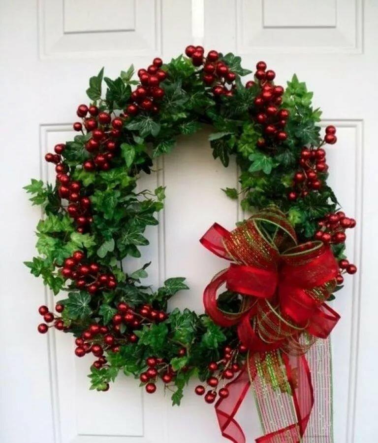 Les guirlandes et les décorations de Noël habituelles peuvent constituer la décoration de porte la plus traditionnelle pour le Nouvel An.