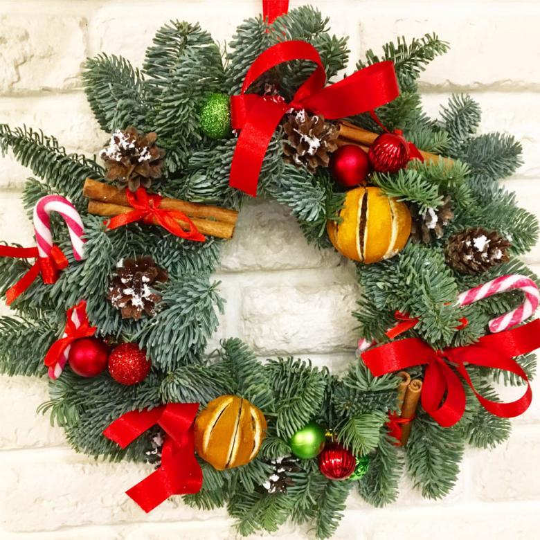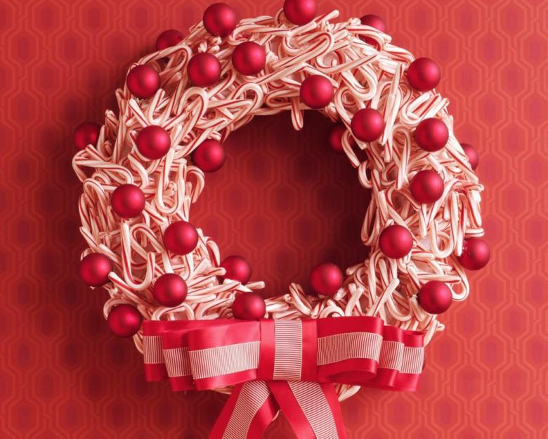 Les couronnes comestibles, généralement composées de petits chocolats ou de bonbons, constituent une décoration inhabituelle. Normalement, les bonbons sont cachés dans les guirlandes. Mais il est également possible de fabriquer une couronne uniquement à partir de sucreries. Le seul inconvénient d'une telle création est qu'elle peut être rapidement mangée. Une création sucrée a peu de chances de survivre jusqu'à l'année prochaine.
