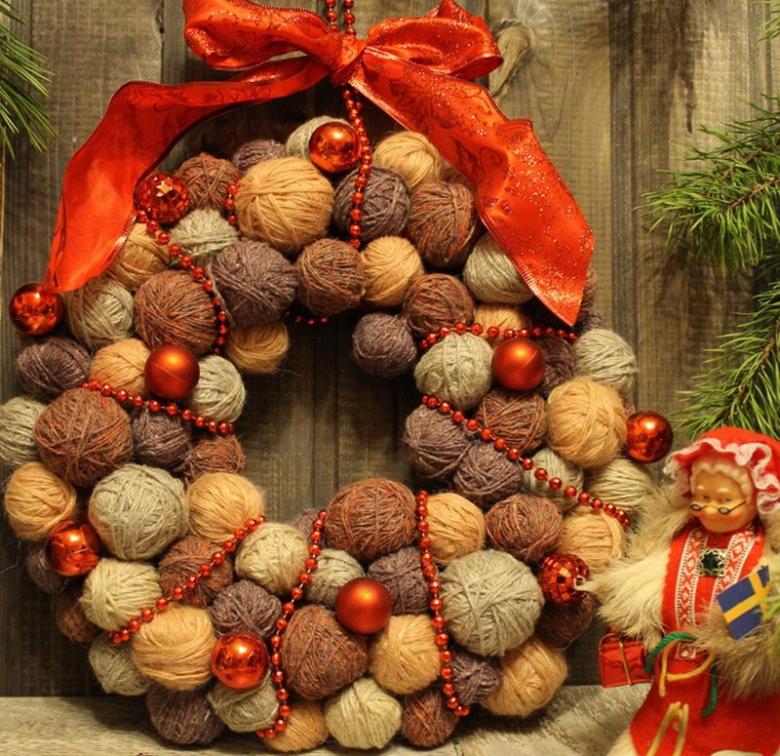 Les espaces entre les peluches de laine peuvent être remplis de guirlandes ou vous pouvez combiner des pompons et des boules de Noël.