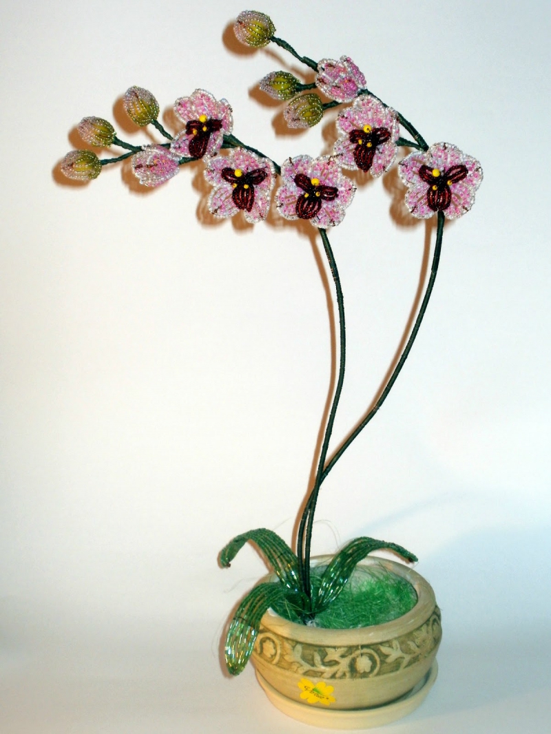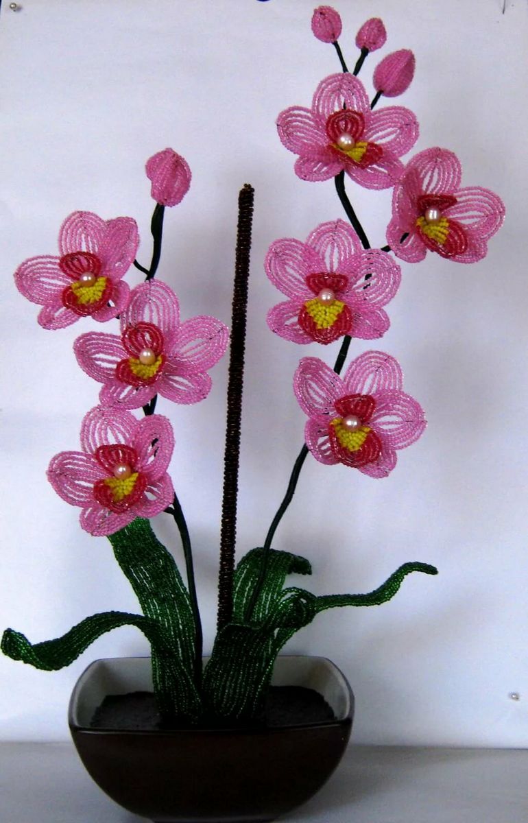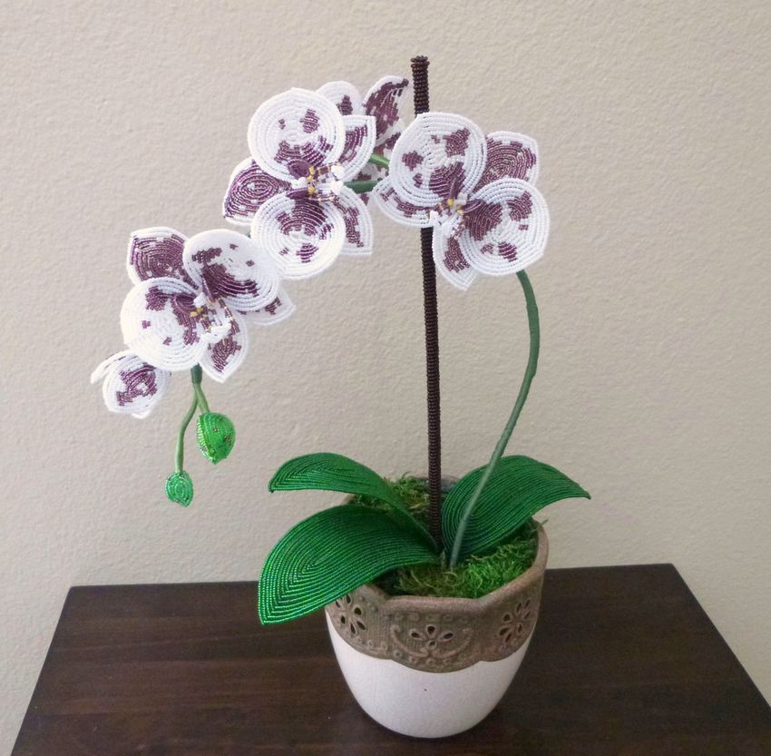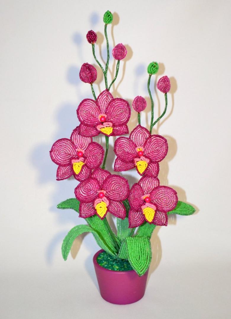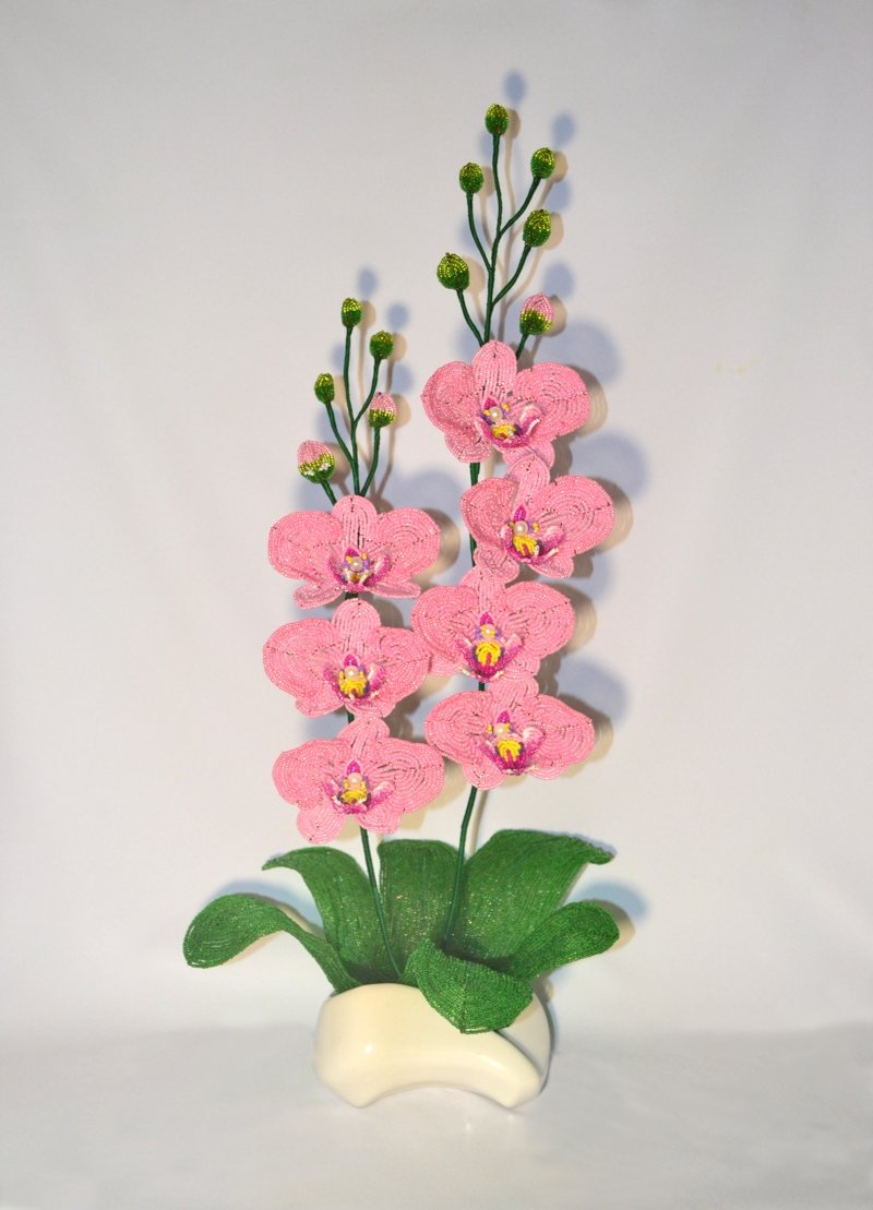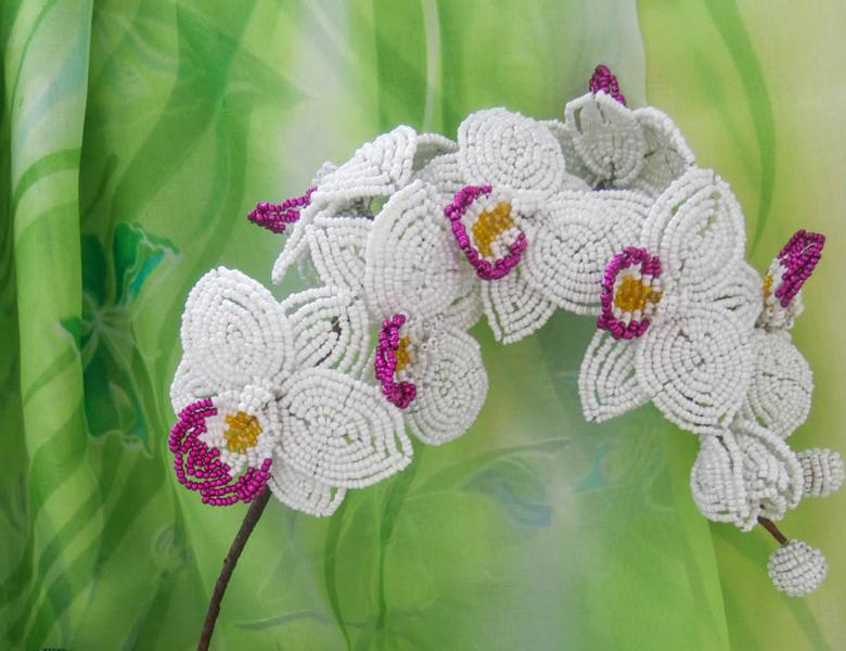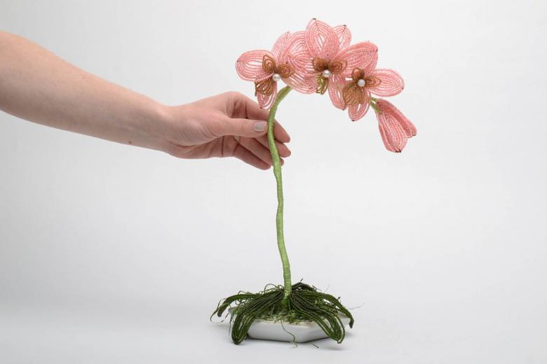Tisser une orchidée à partir de perles est un processus assez long, qui demande beaucoup de temps et d'efforts. Mais le résultat en vaut la peine : en récompense de son travail, le maître recevra chez lui une fleur qui le ravira toute l'année.