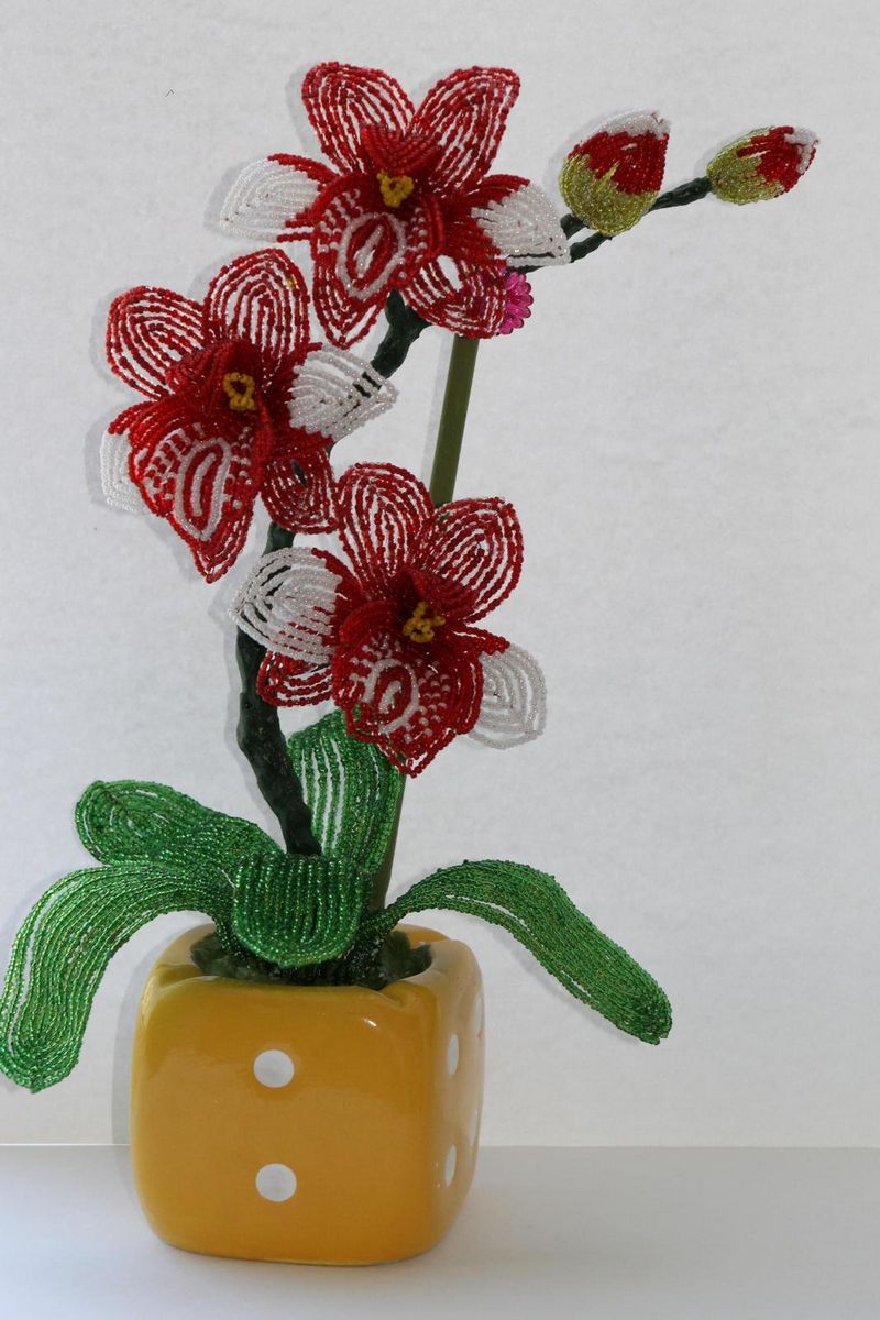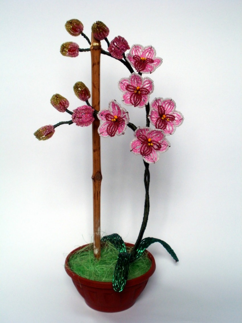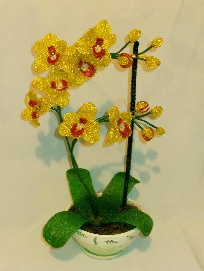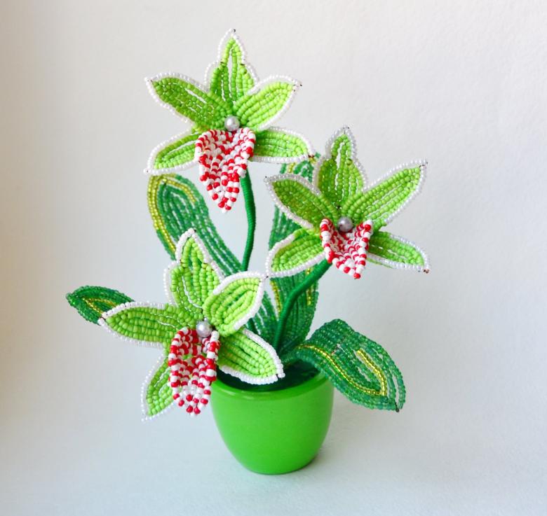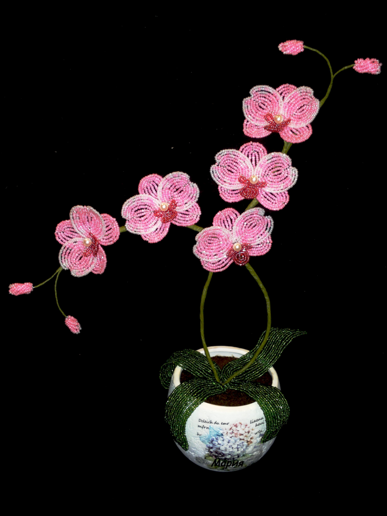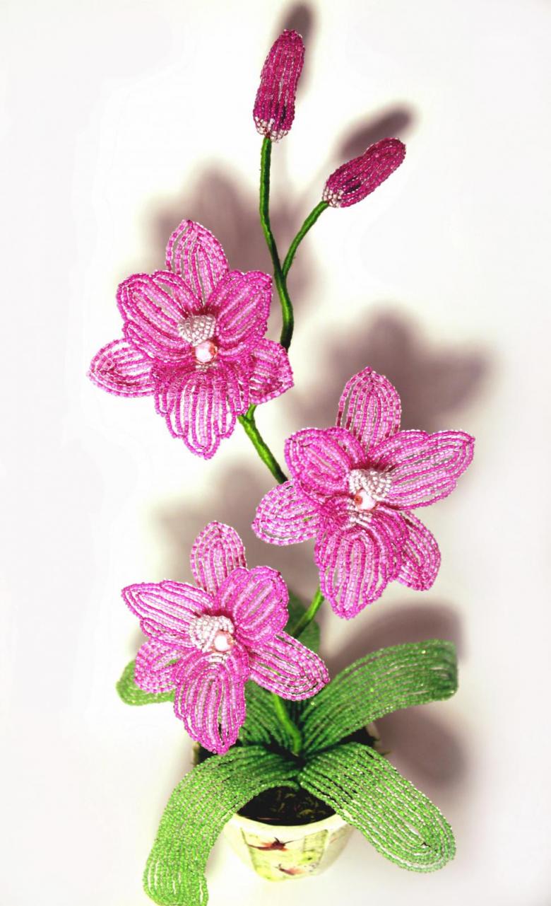 Tisser une orchidée à partir de perles est un processus assez long, qui demande beaucoup de temps et d'efforts. Mais le résultat en vaut la peine : en récompense de son travail, le maître recevra chez lui une fleur qui le ravira toute l'année.