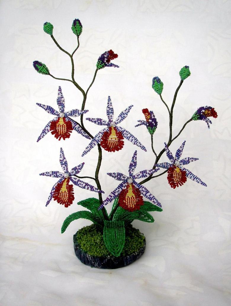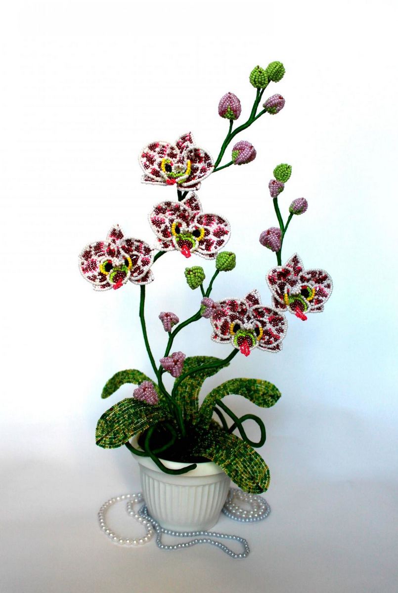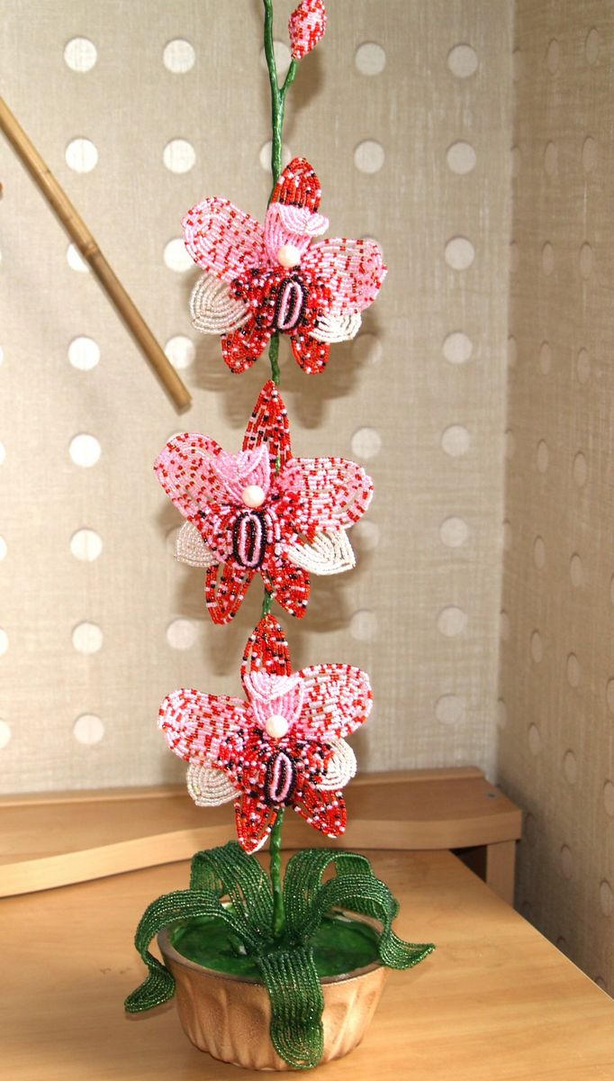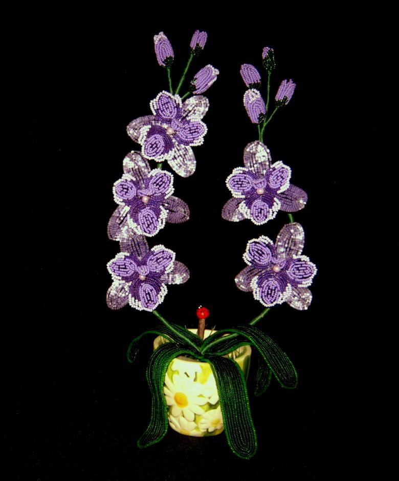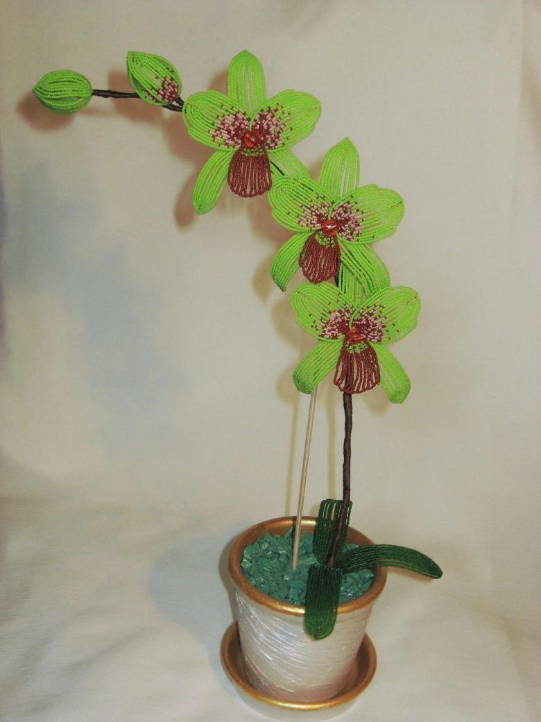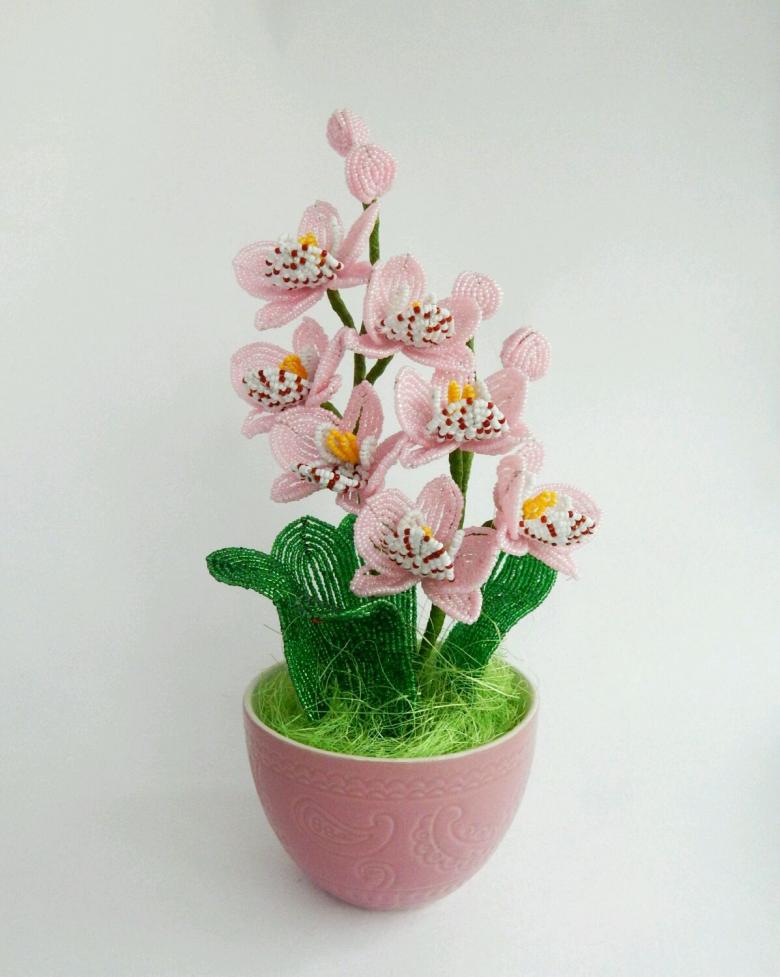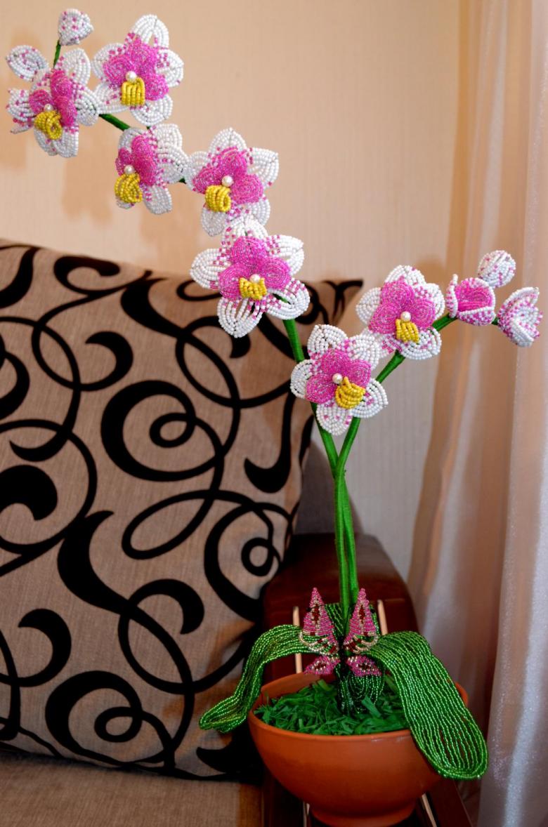 Tisser une orchidée à partir de perles est un processus assez long, qui demande beaucoup de temps et d'efforts. Mais le résultat en vaut la peine : en récompense de son travail, le maître recevra chez lui une fleur qui le ravira toute l'année.