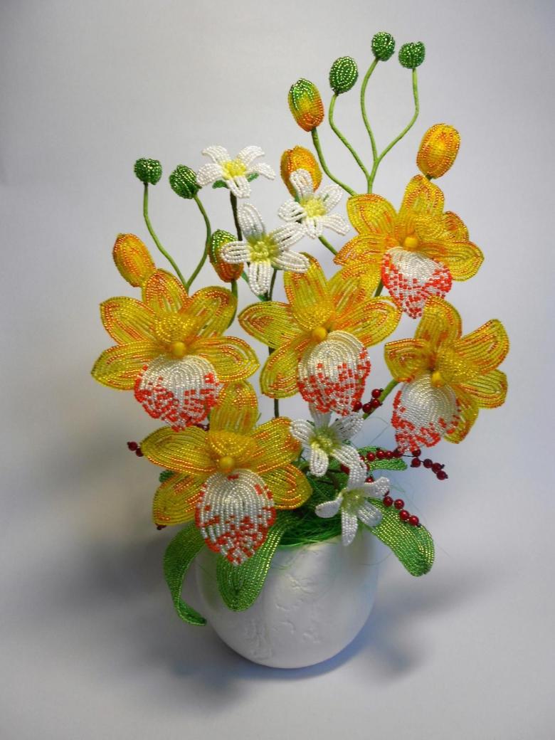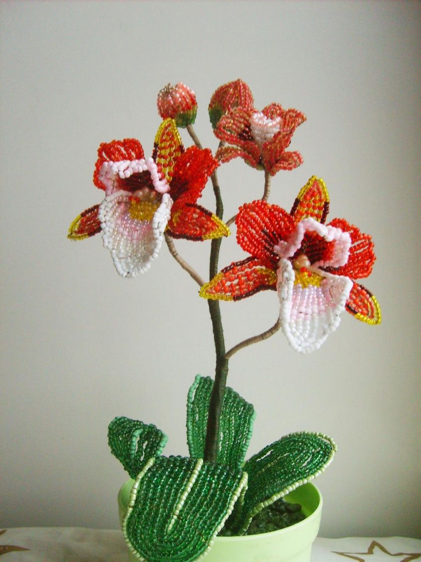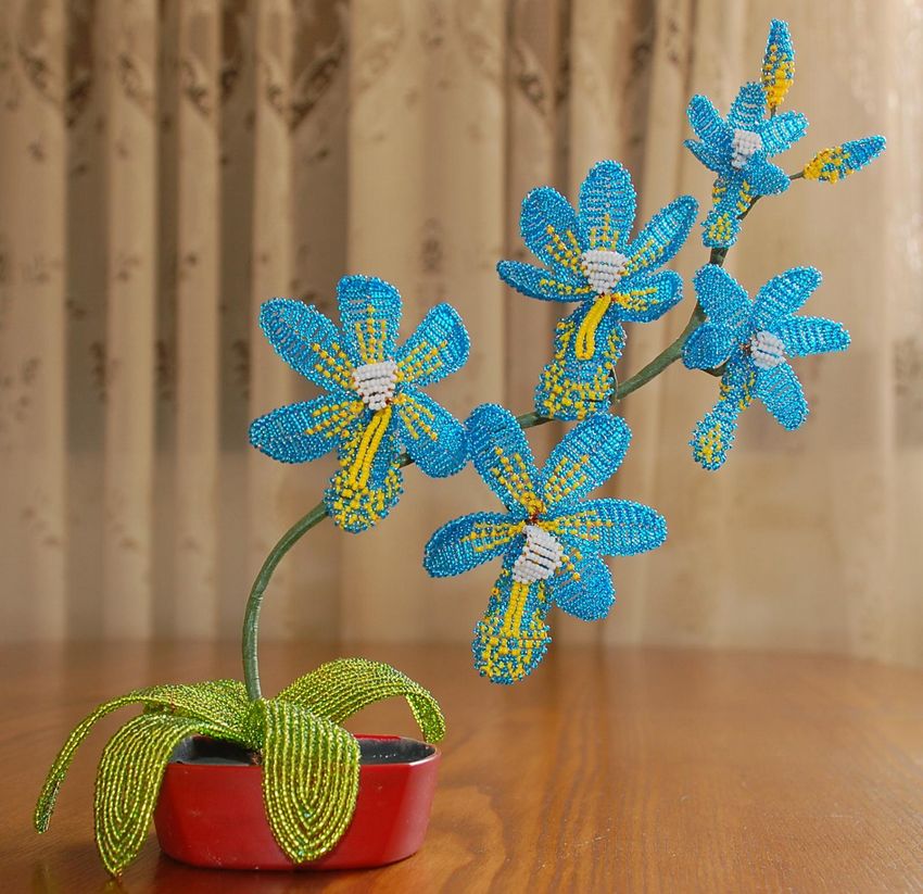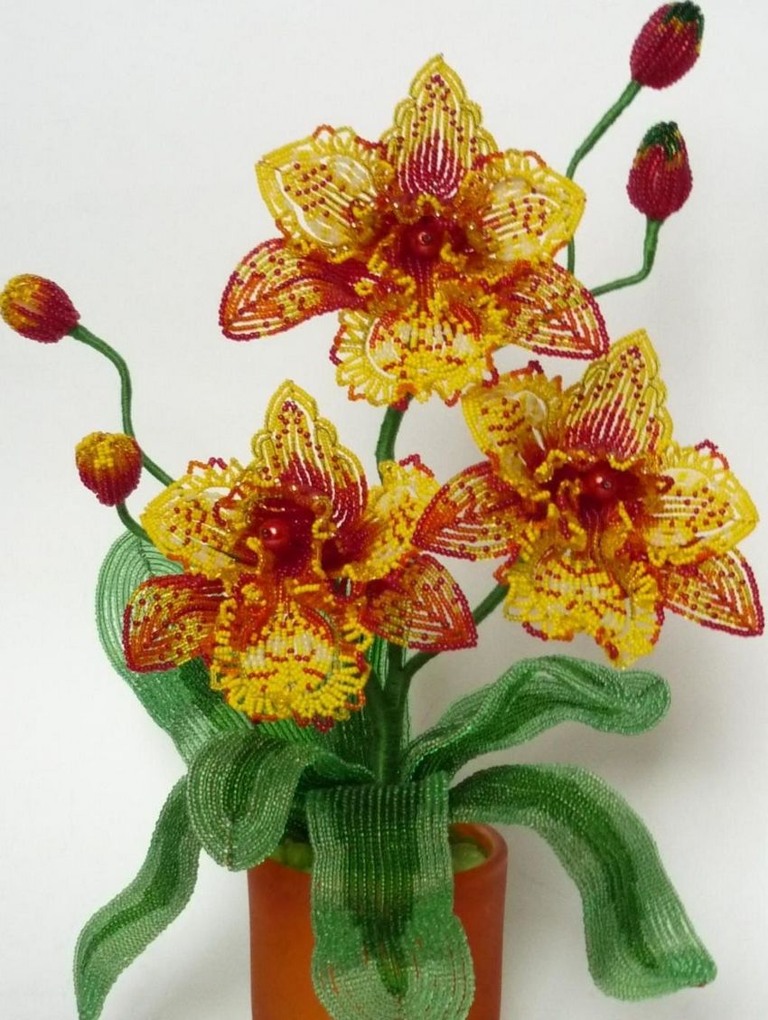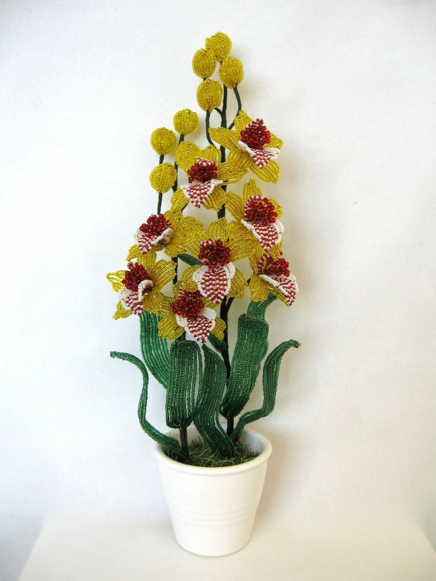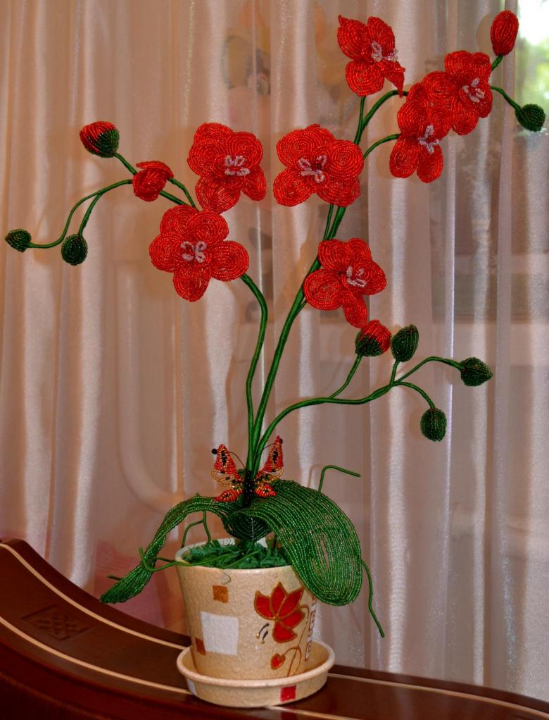 Tisser une orchidée à partir de perles est un processus assez long, qui demande beaucoup de temps et d'efforts. Mais le résultat en vaut la peine : en récompense de son travail, le maître recevra chez lui une fleur qui le ravira toute l'année.