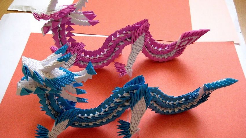 Outre l'origami, le dragon de papier est réalisé selon un autre schéma. Il existe une autre possibilité de plier des dragons en papier - les modules. Ici, la difficulté ne réside pas dans l'assemblage des modules eux-mêmes, ni dans la forme finale de la figure.