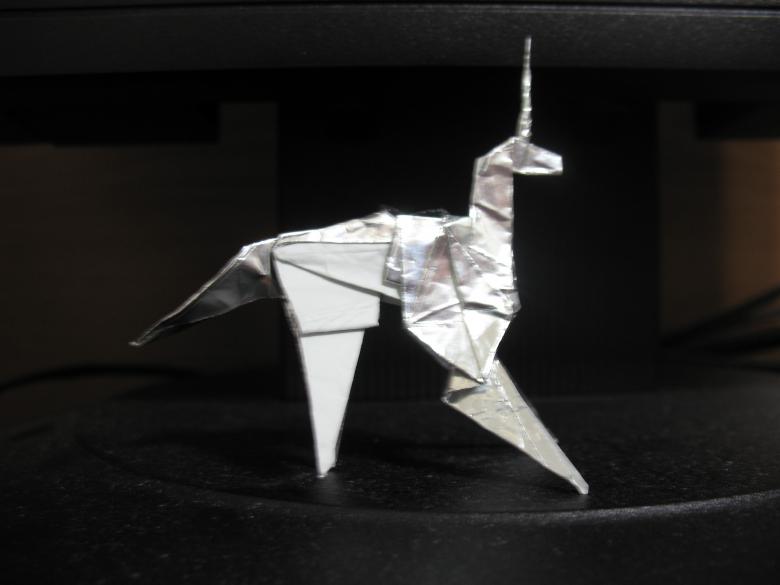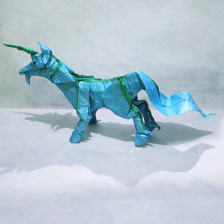 Matériel pour fabriquer une licorne en origami :