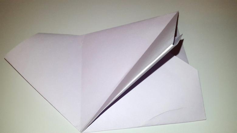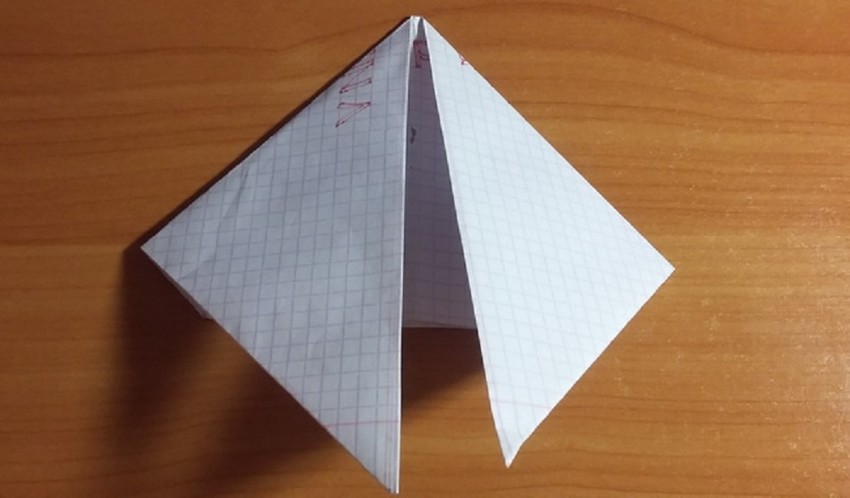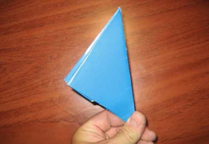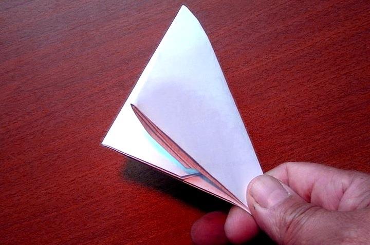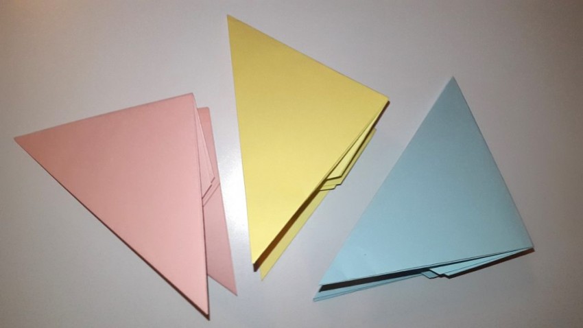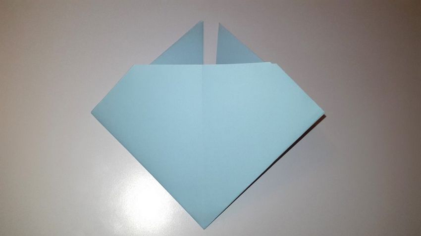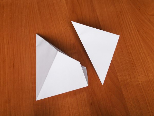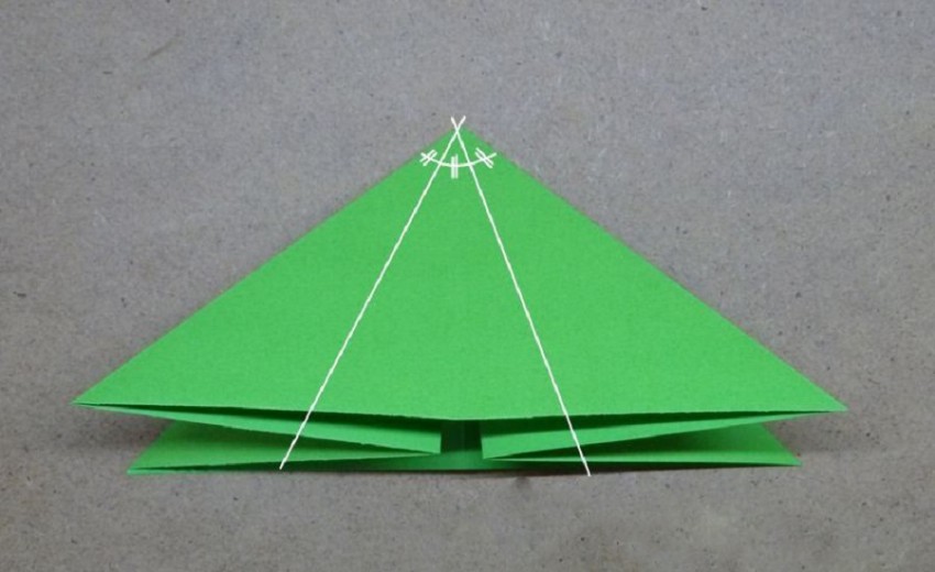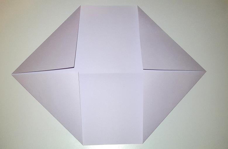 - Pliez le trapèze ainsi obtenu dans le sens de la largeur de la vallée. Repasser tous les plis avec ses doigts, déplier.