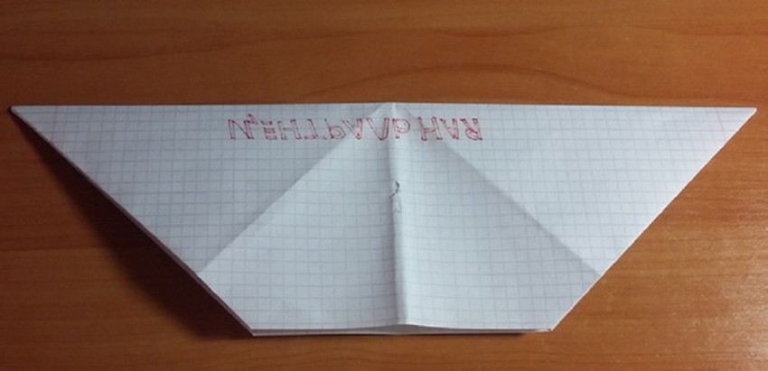 - Plier la montagne - rabattre les bords du papier et l'étendre. La ligne de pliage sera dirigée vers le haut, comme s'il s'agissait d'une montagne.