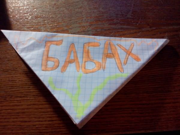 - Placez le rouleau en triangle de façon à ce qu'un coin ait quatre extrémités, et l'opposé - une extrémité. Pour frapper dans les mains, il faut prendre l'une des quatre extrémités libres et abaisser brusquement la main. Ensuite, le clapet doit à nouveau être roulé. Lorsque tout est prêt, vous devez frapper le clapet avec votre main pour faire sortir l'air.