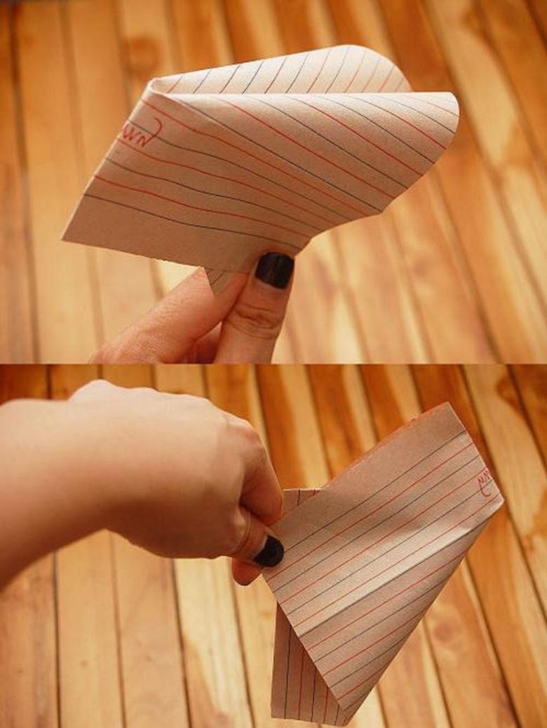 - Pliage en vallée - plier les bords du papier vers le haut et le déplier. Dans ce cas, la ligne de pliage sera dirigée vers le bas.